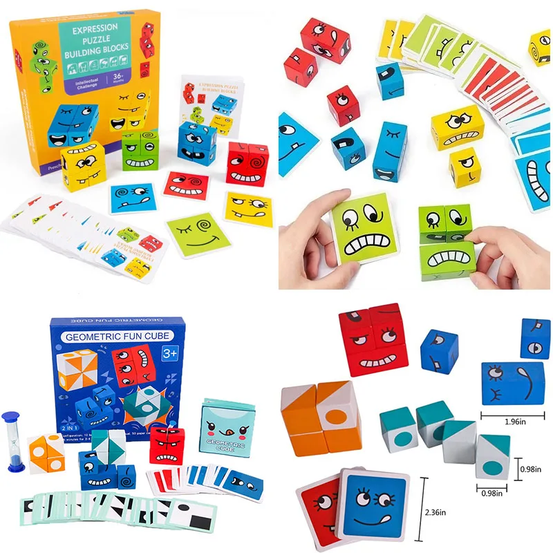 Деревянный кубик Монтессори с геометрическими фигурами, меняющий лицо, развивающая игрушка для детей