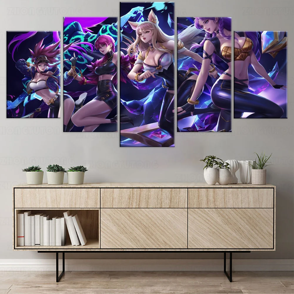 Домашнее декоративное настенное изображение Kda Ahri Akali Evelynn Kaisa League of Legends плакат с игрой 5 шт. Печать на холсте Модульная картина