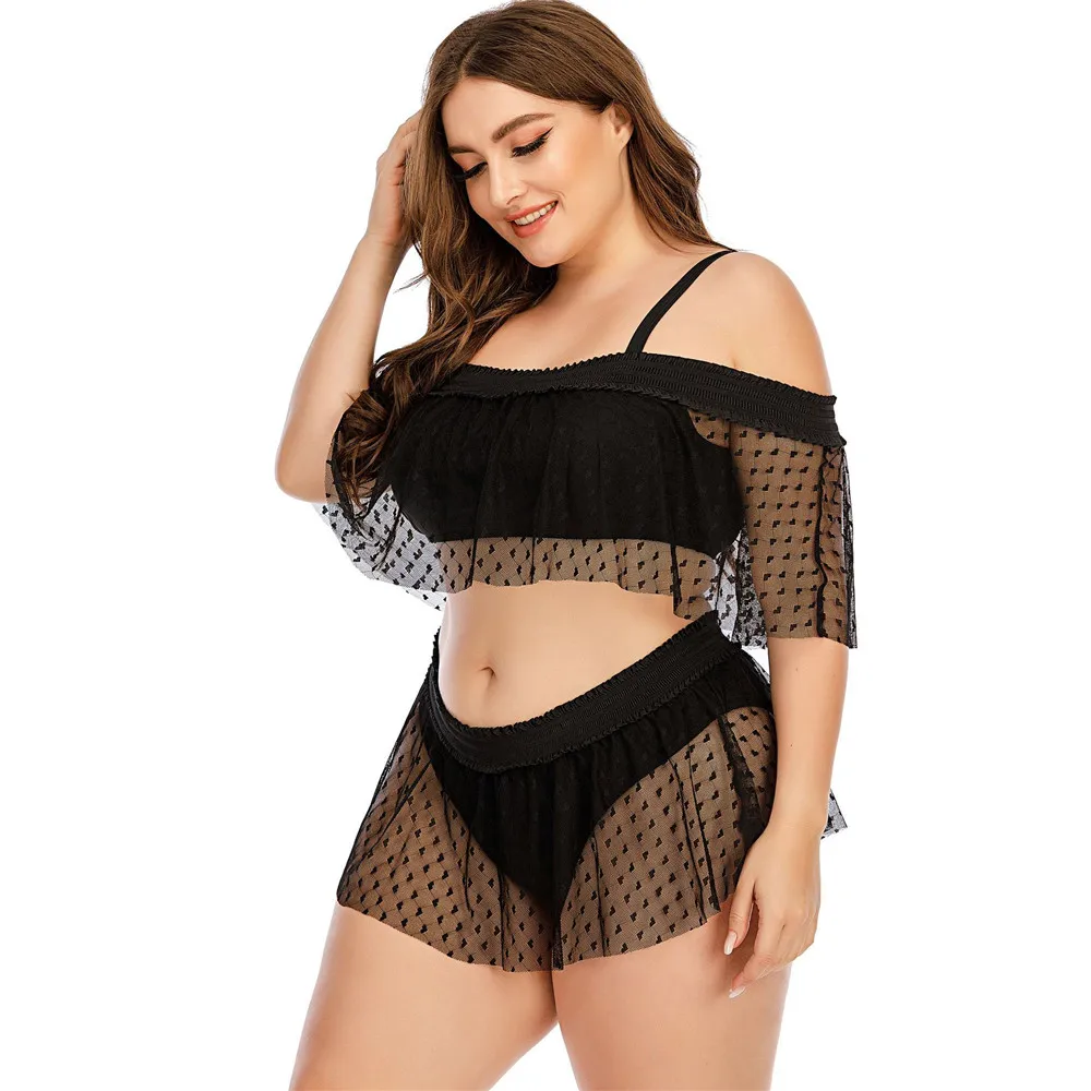 Бикини женское, черное, в стиле ретро, с сетчатым верхом, с рукавом средней длины, пляжная одежда, 2021 XL-5XL
