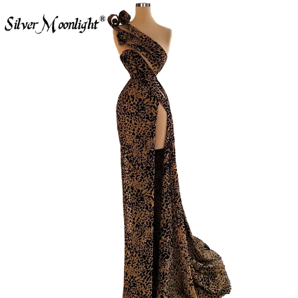 Женское леопардовое вечернее платье с высоким разрезом по бокам, 2021 сексуальное платье с одним плечом и шлейфом в форме русалки, большие размеры, арабские платья