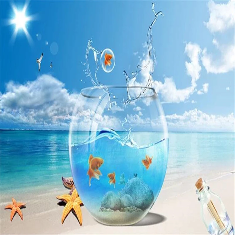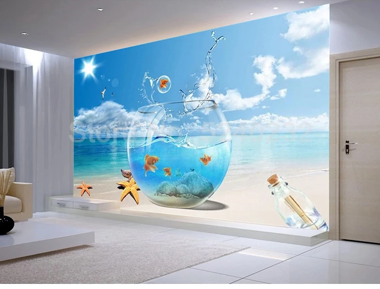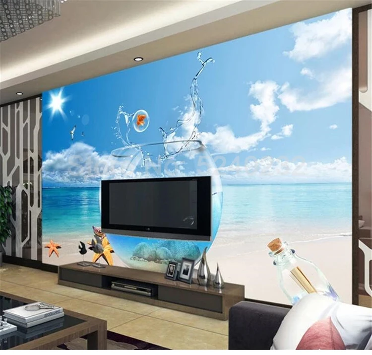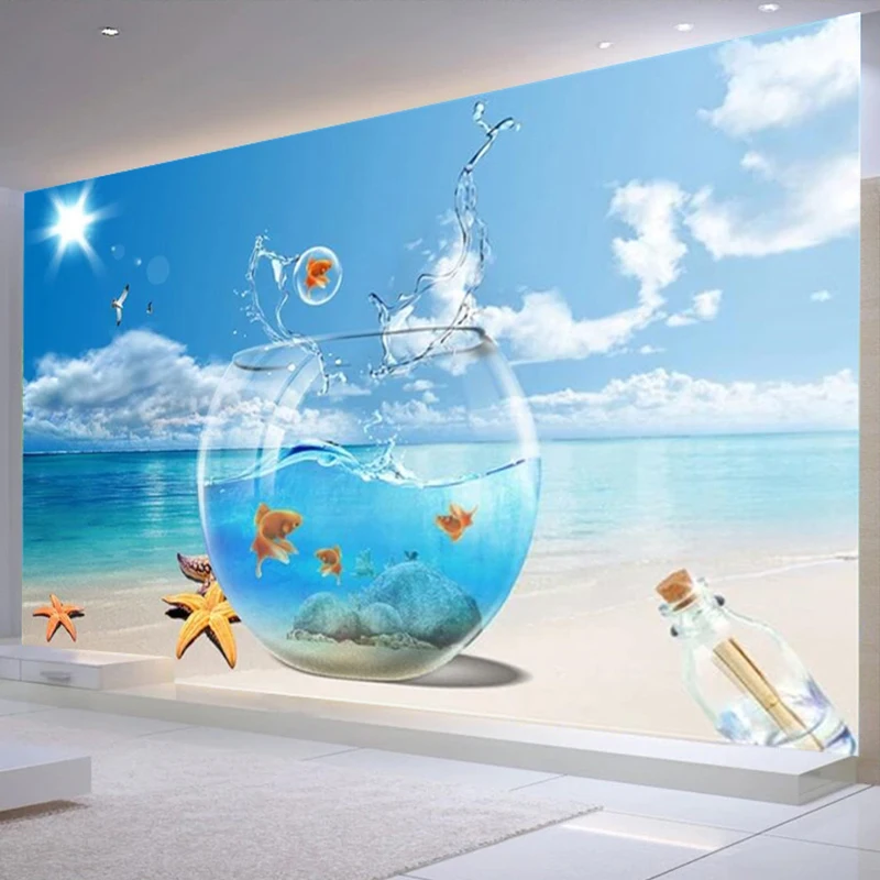 Пользовательский 3D плакат с изображением пляжа, настенная живопись, аквариум, вид на море, большая роспись, гостиная, спальня, пейзаж, декоративные 3D-обои