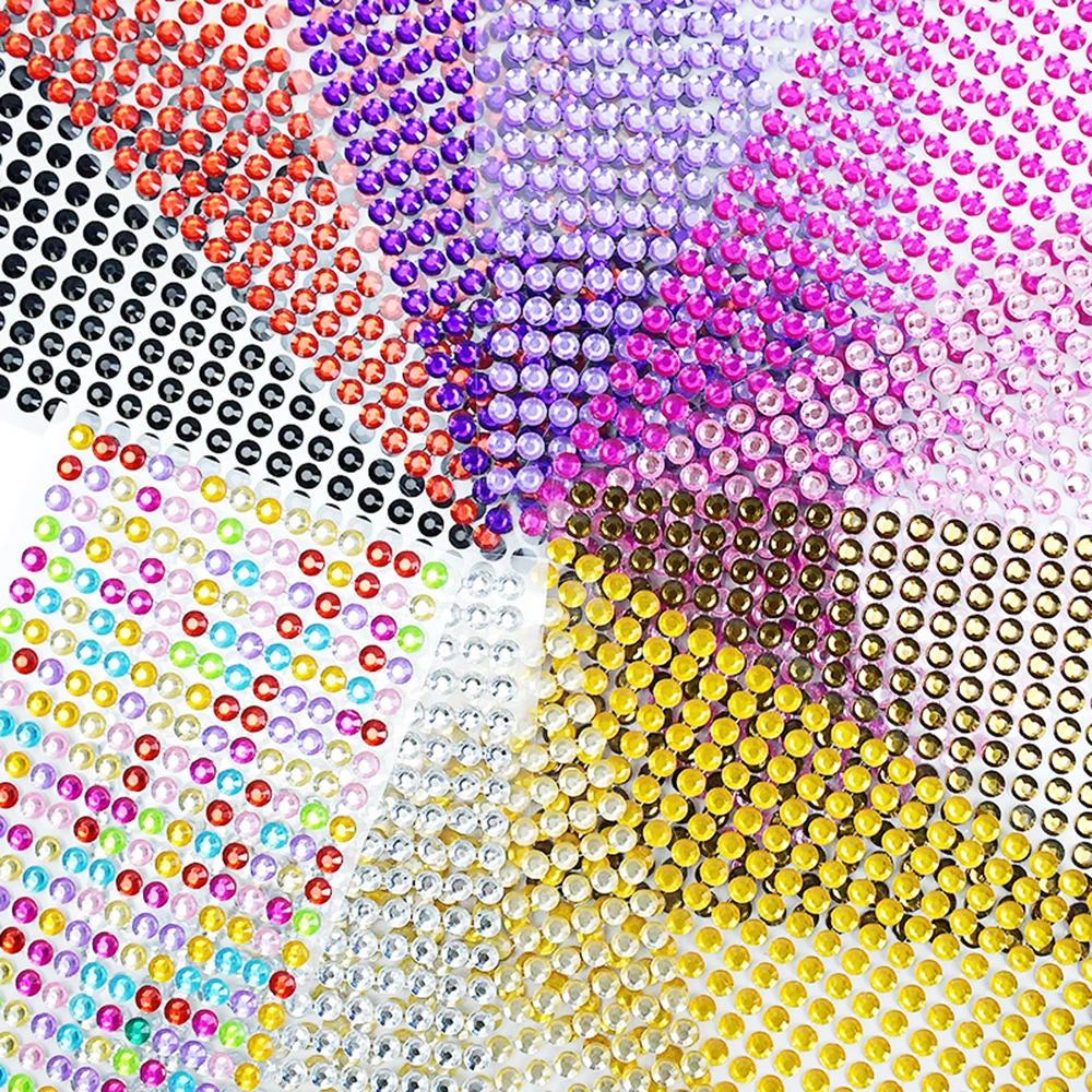 Наклейки для Стразы самоклеящиеся, 20 цветов и 3 размера, 3300 шт.