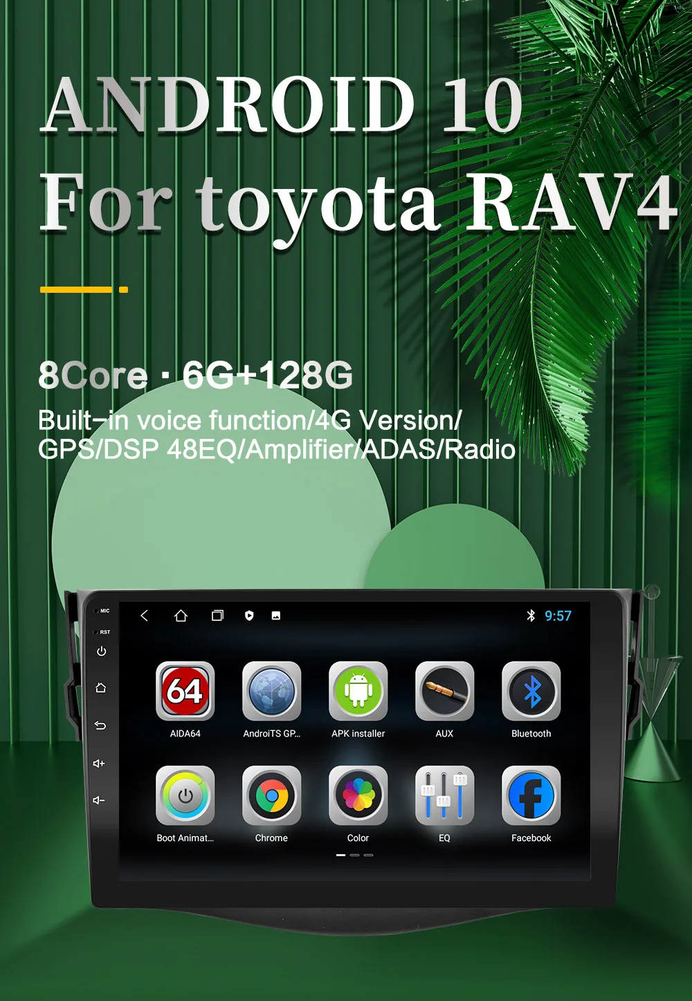 Автомагнитола на Android 10,0 для Toyota Rav 4 2005 2006-2007, мультимедийный видеоплеер с Bluetooth, DSP, GPS, Wi-Fi, Carplay