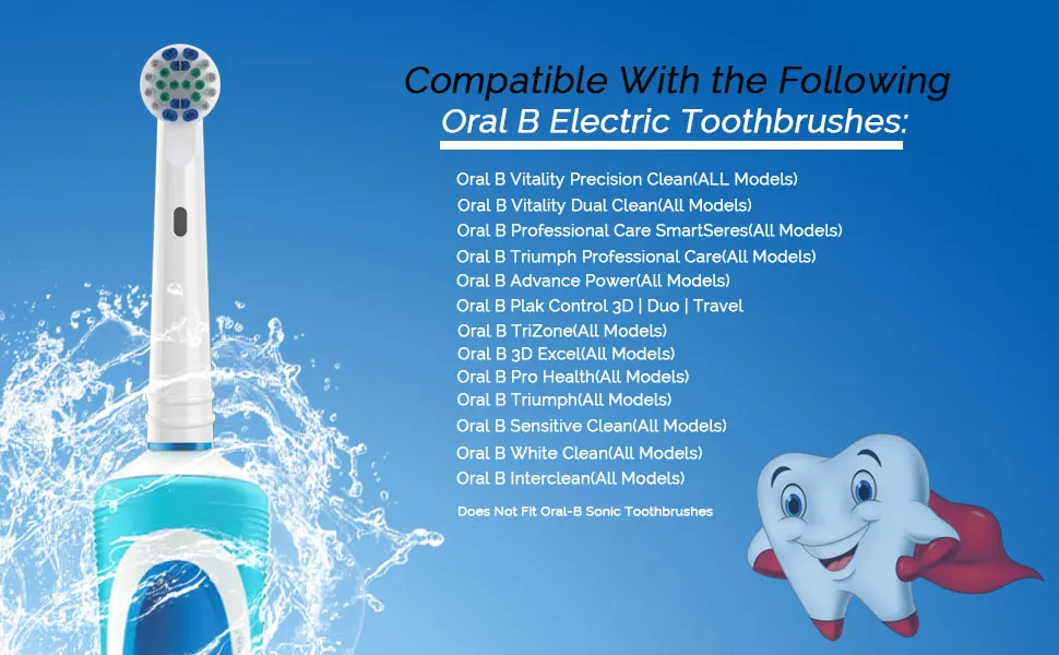 Об этом товаре ✅Профессиональная чистка каждый день-сменные головки зубной щетки вдохновлены превосходной мощностью чистки профессиональных стоматологических инструментов ✅PROTECH ваши зубы во всех направлениях-мягкие щетинки для защиты зубов от вредной жесткой чистки и комфортной чистки этими щетками! ✅Предотвращает образование полостей-щетинки из стороны в сторону, а подвижный наконечник питания проникает в труднодоступные места, а стационарные щетинки полируют поверхности зубов, более эффективно очищая зубы ✅Головки зубной щетки Mailink совместимы со всей линейкой перезаряжаемых ручек Oral-B, за исключением зубных щеток Oral-B sonic | Подходит к Vitality, Triumph, Genius, Professional, И многое другое (полный список совместимых моделей см. В описании ниже) ✅Гарантированное удовлетворение-100% удовлетворение гарантировано нашими превосходными сменными головками щеток или возвратом ваших денег.