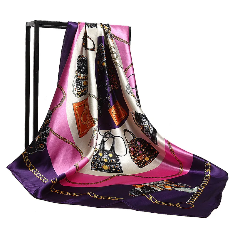 Женский легкий Шелковый шарф с принтом и защитой от солнца, 90x90 см, атласный квадратный головной шарф для женщин, верхние шали и палантины, 2021