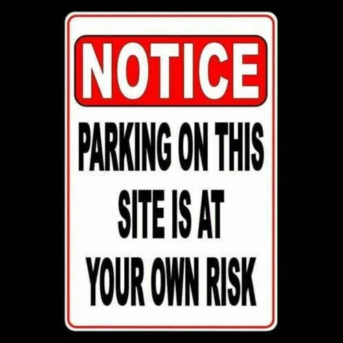 Обратите внимание, что парковка на этом сайте находится под вашим собственным риском, Защитный металлический знак 8x12 дюймов