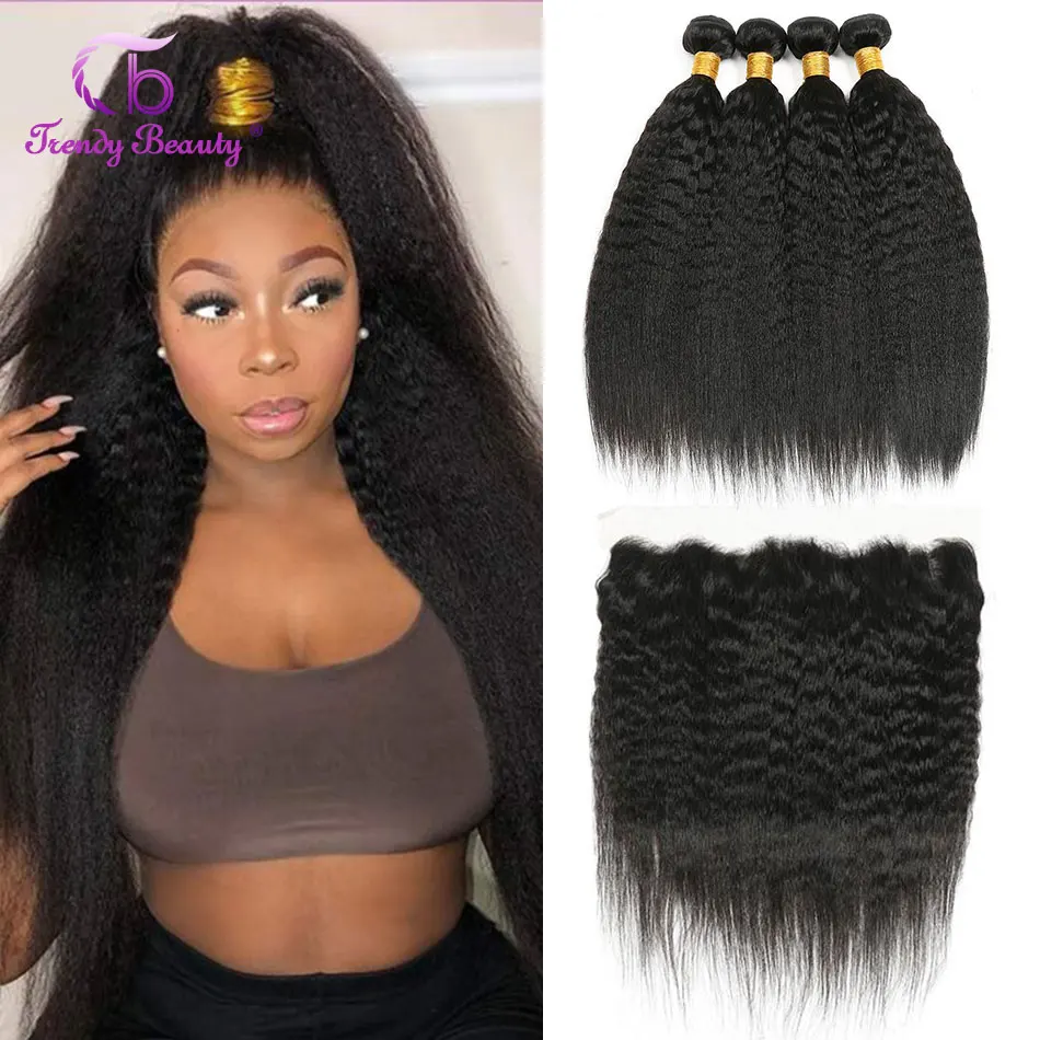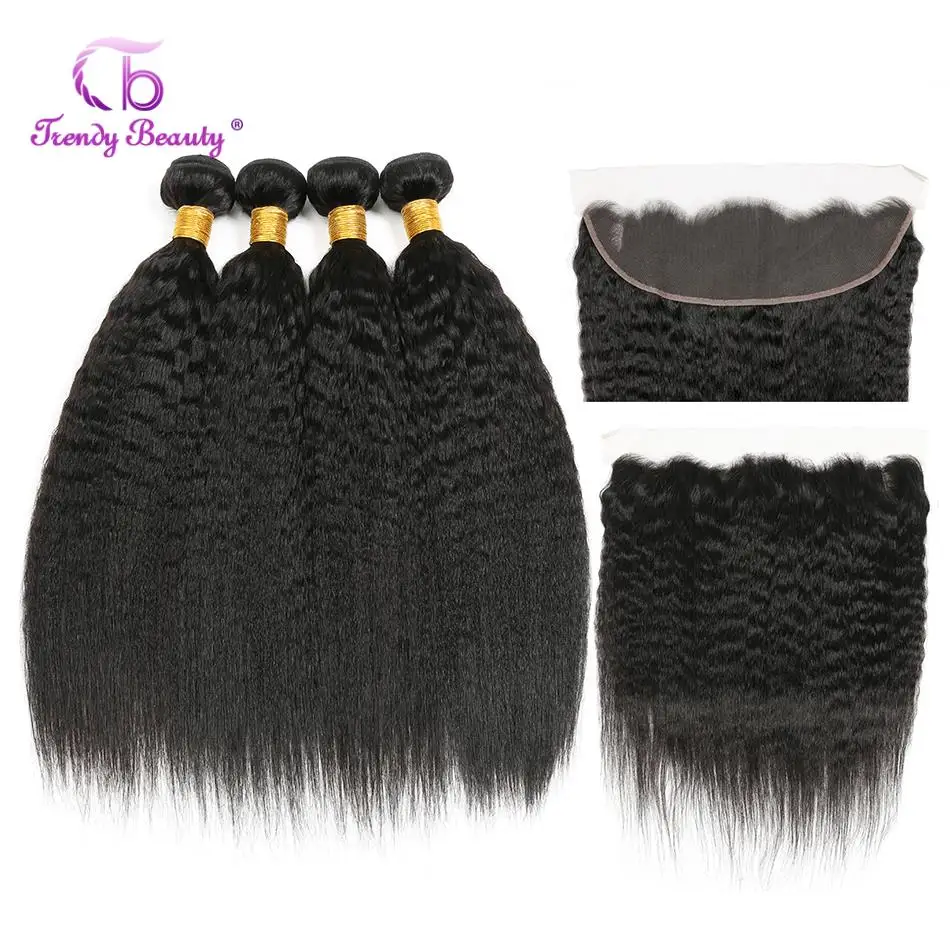 Бразильские волнистые волосы 4 пряди с фронтальной сеткой 13X4, курчавые прямые двойные неповрежденные пряди с фронтальной сеткой от уха до уха