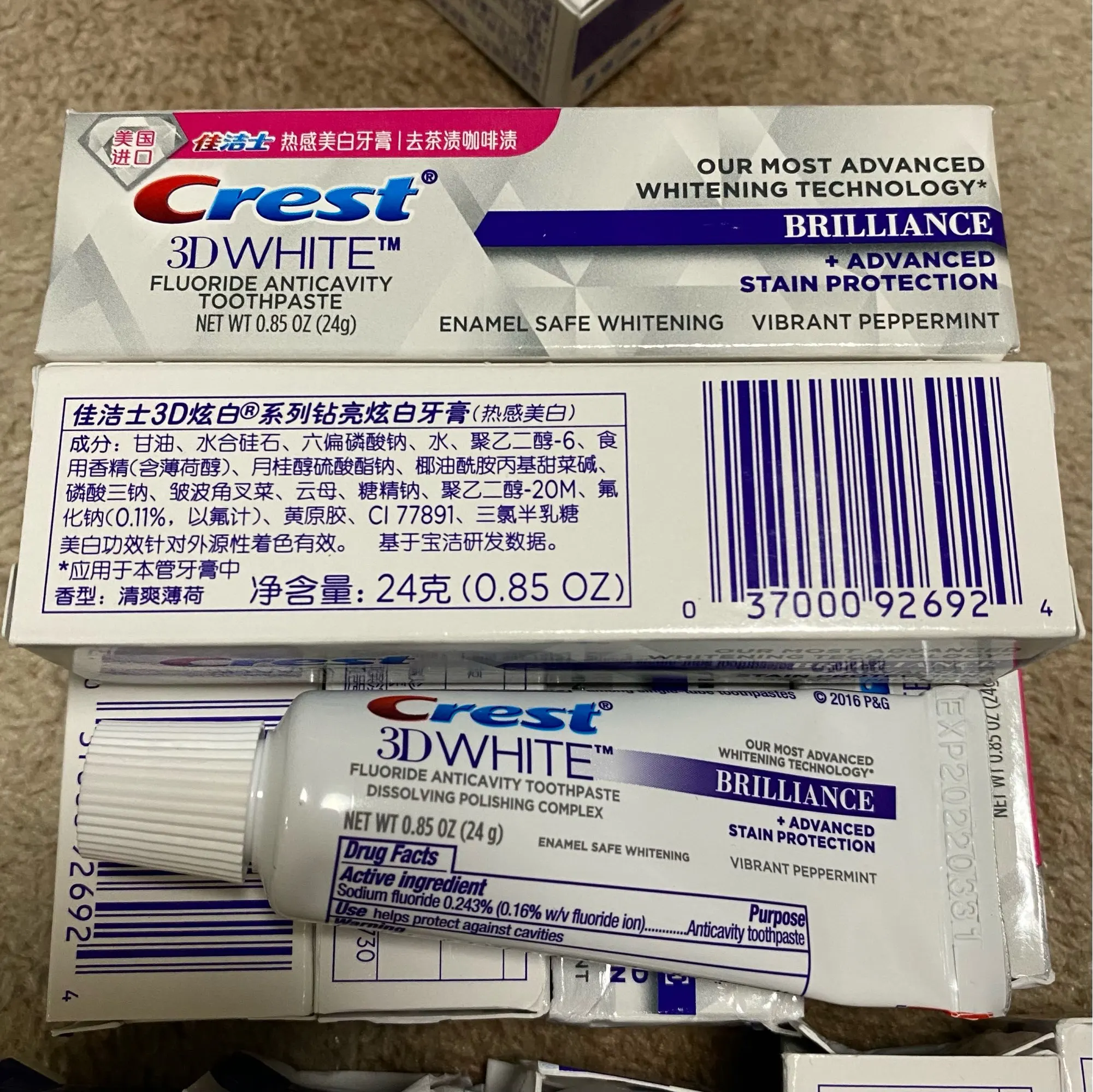 Примечание:Вес нетто этой зубной пасты составляет 20 г, оригинальная белая зубная паста Crest 3D,Он специально используется для путешествий/бизнеса.