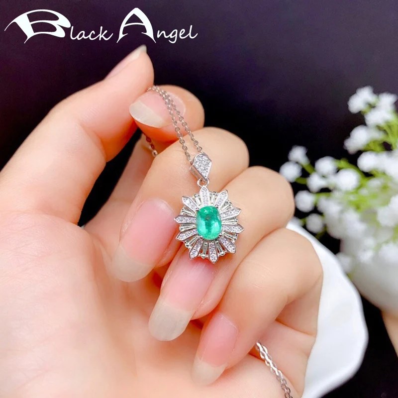 Черный Ангел высокое качество 925 Серебряные Роскошные блестящие зеленого турмалинового изумруд драгоценный камень ожерелье для женщин кулон свадебные украшения