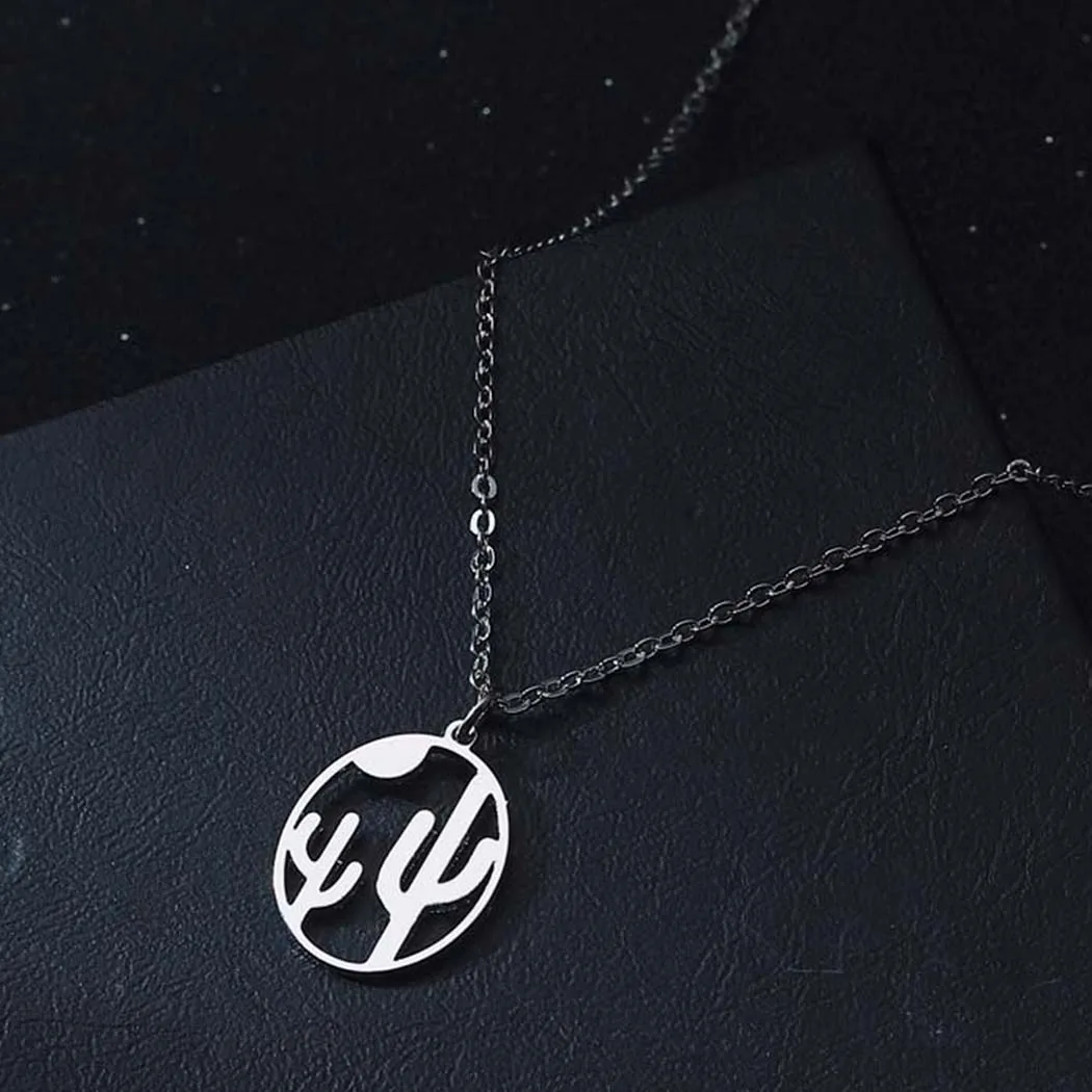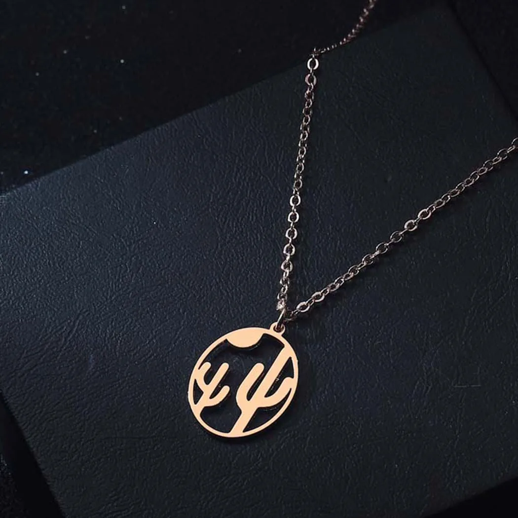 Ожерелье из Нержавеющей Стали С КАКТУСОМ и закатом для женщин, женская бижутерия, ошейник, простое ювелирное изделие ручной работы, женские ожерелья