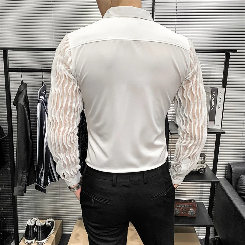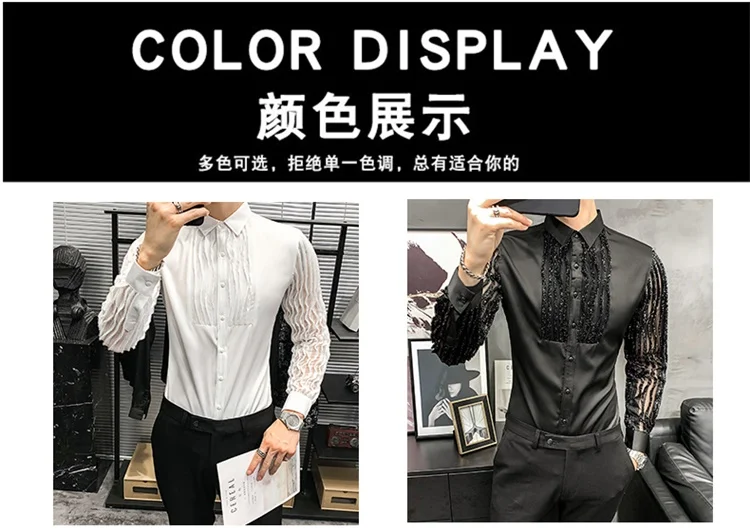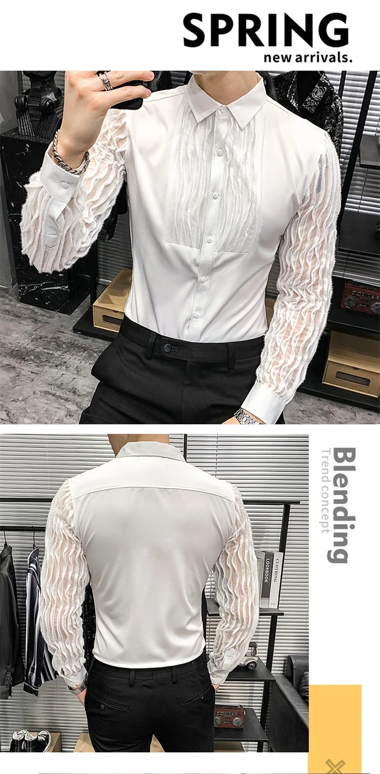 Новая весенняя одежда в Корейском стиле, сексуальные кружевные Детские рубашки, мужская одежда 2021 с точки зрения, с длинными рукавами, простая модная обувь для ночного клубавыпускных вечеров, смокинг 3XL-M