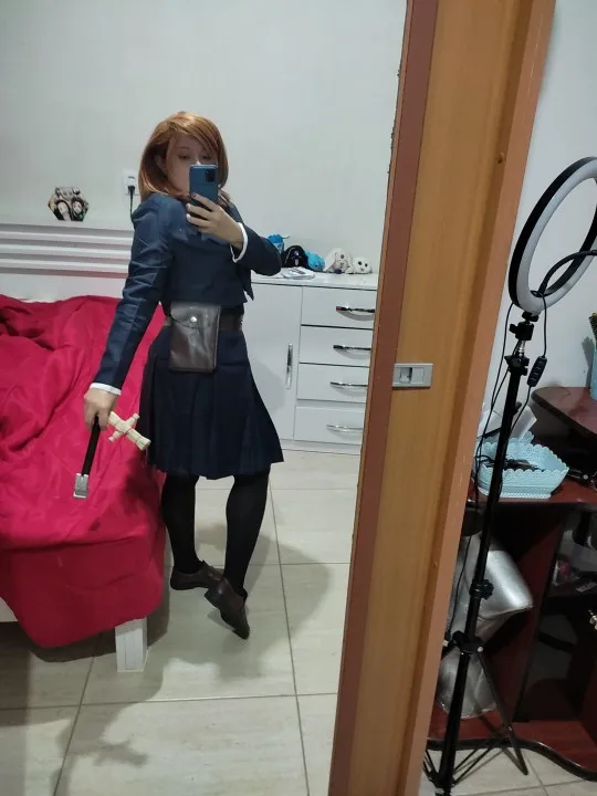 Косплей соответствует описанию, довольно удобно. Юбка длинная, похожая на ту, что на аниме. Парик имеет Обильные Волосы, он мягкий и очень легко расчесывается. Я заказал дополнительный размер для комфорта, но я думаю, что размер L также подходит для моего тела (талия 77 см, бюст 99)
