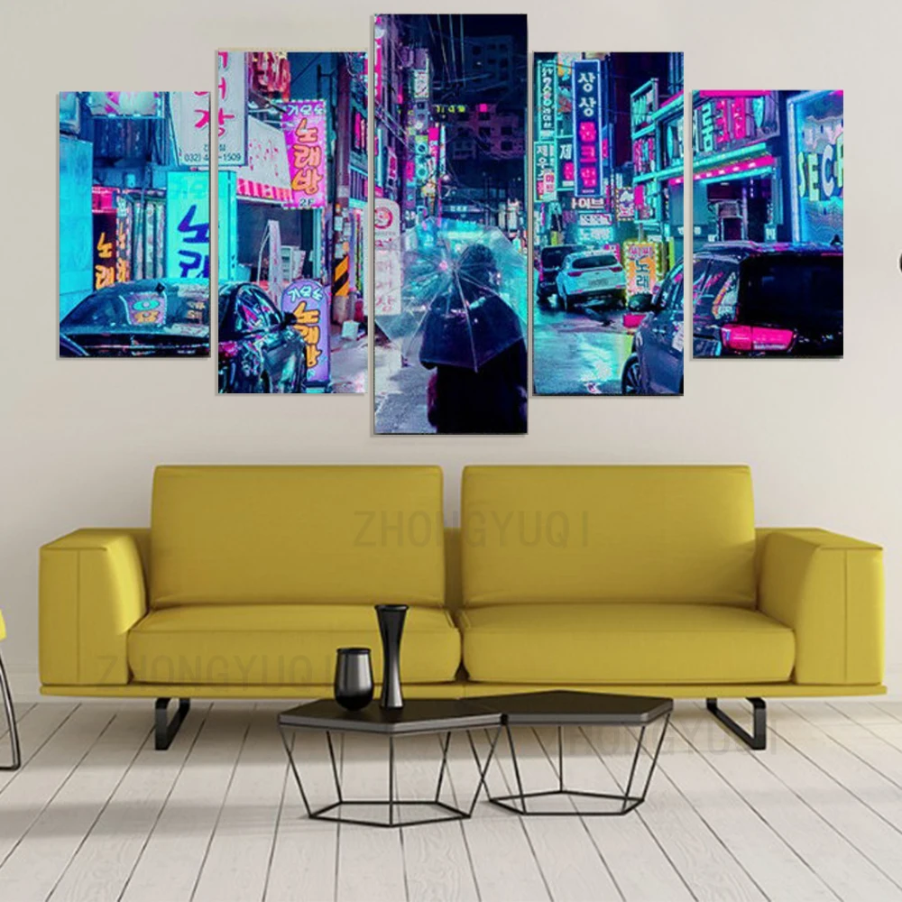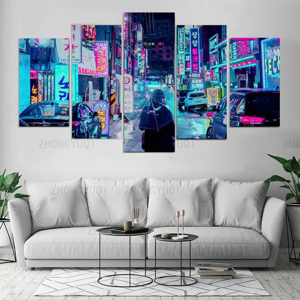 Неоновый ночной город, уличный плакат, 5 шт., холст, печать, живопись, домашний декор, настенные художественные принты для спальни, гостиной, Настенный декор