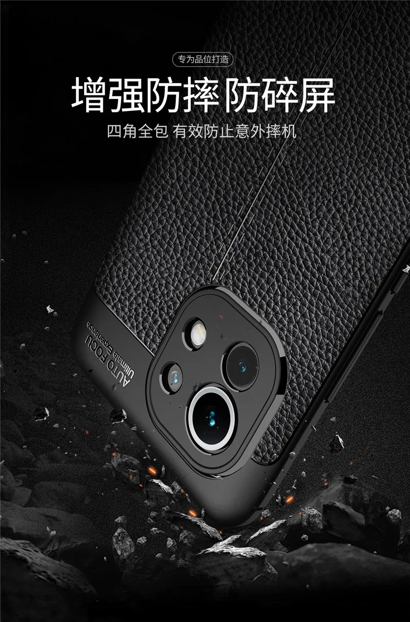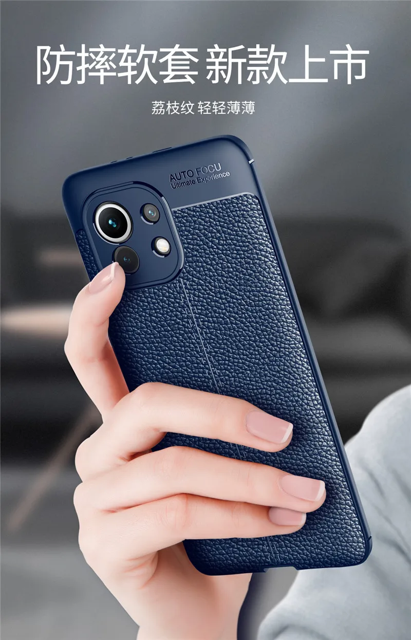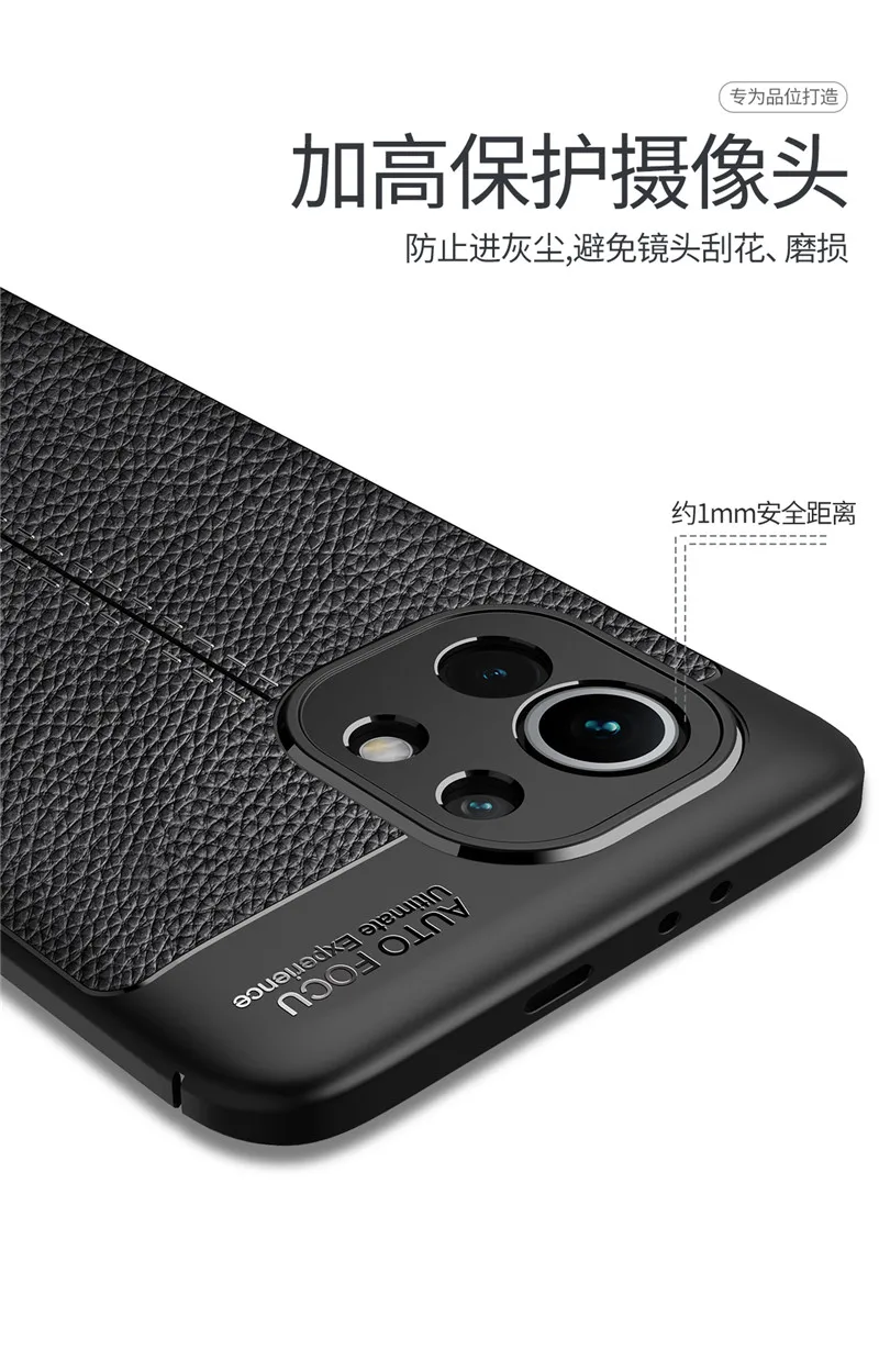 Чехол для телефона Xiaomi 11, кожаный чехол из ТПУ и силикона с узором Личи, бампер, мягкий защитный Роскошный чехол для Xiaomi 11, чехлы