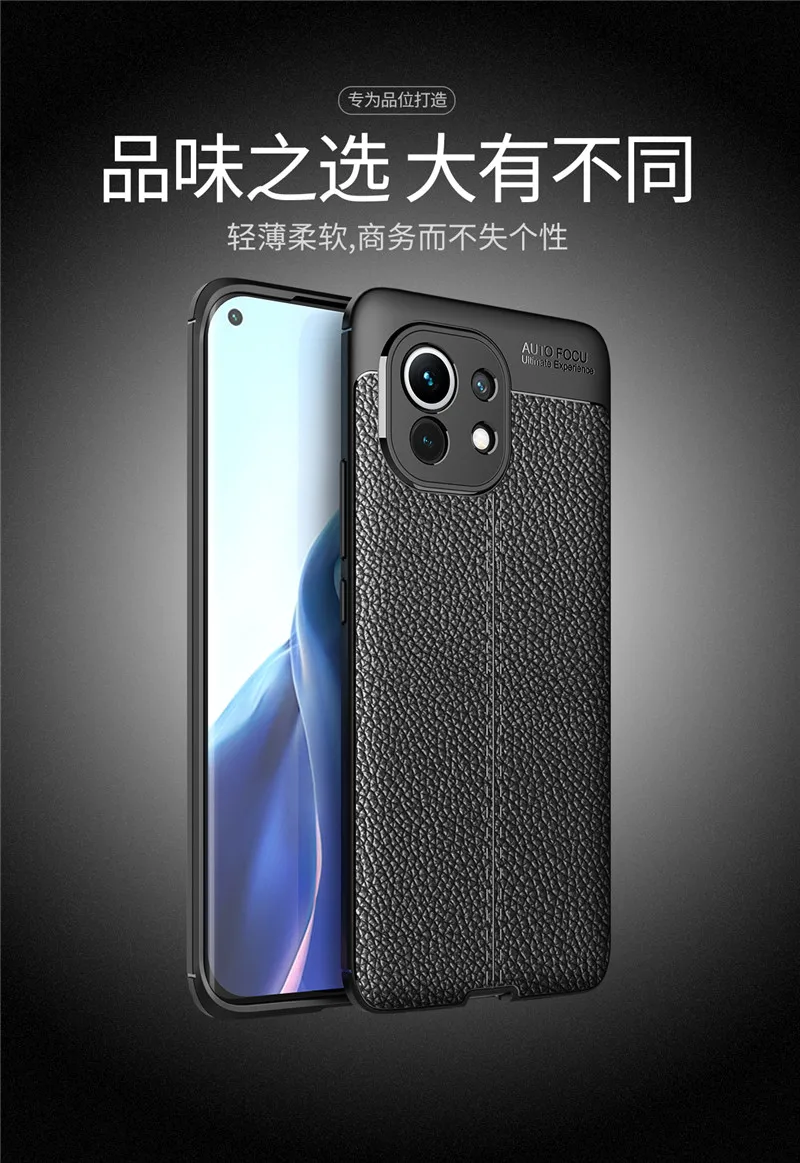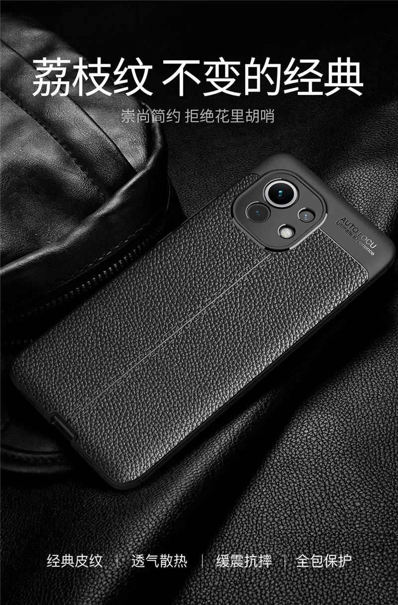 Чехол для телефона Xiaomi 11, кожаный чехол, ТПУ, силиконовый чехол с рисунком личи, бампер, мягкая защита, Роскошный чехол для Xiaomi 11, чехлы