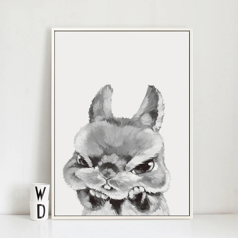 Черно-белое забавное украшение для комнаты с животными, Картина на холсте, панда, кролик, кошка, собака, постер, Настенная картина для гостиной, Настенный декор