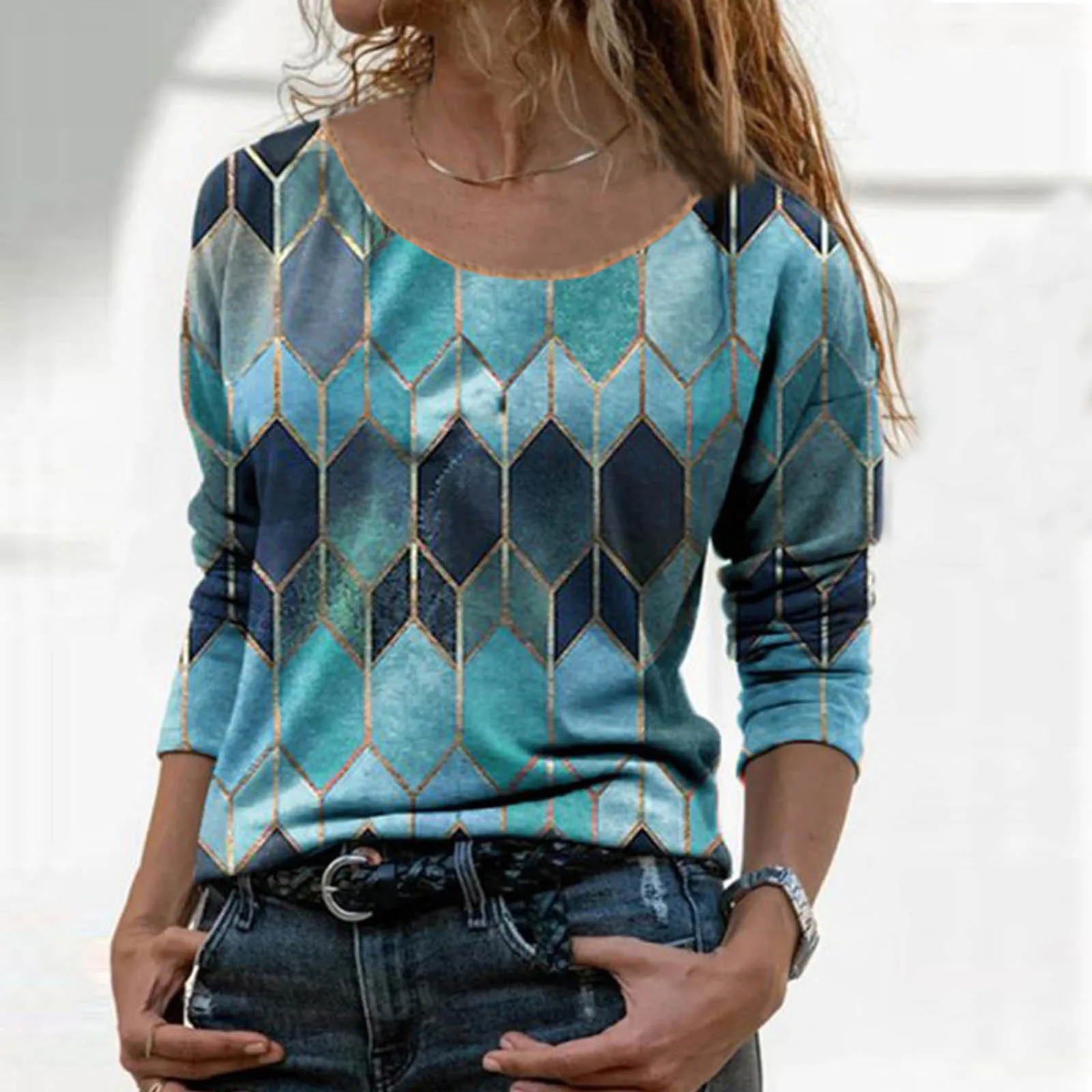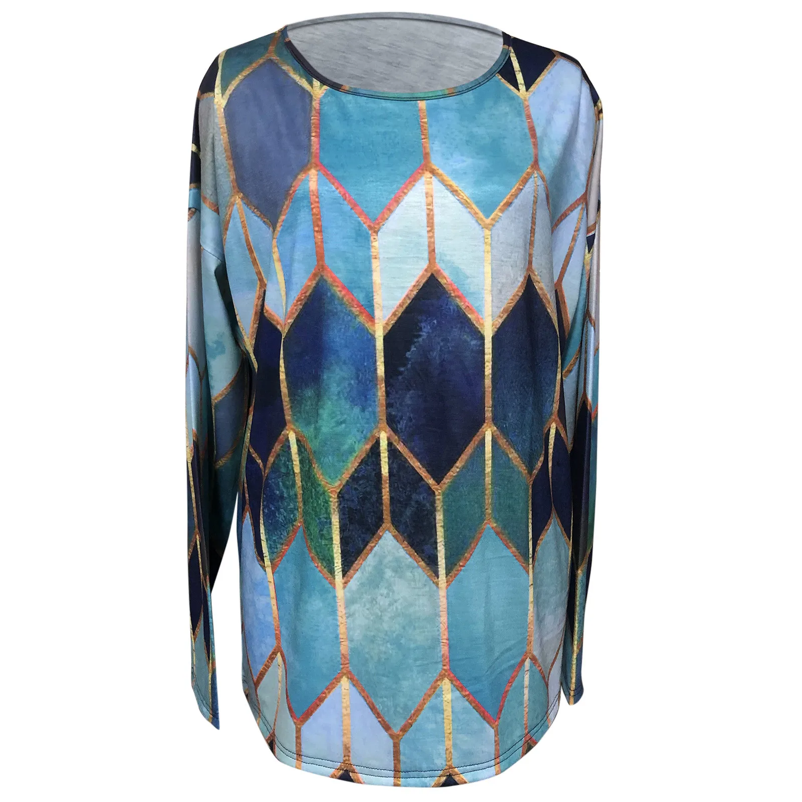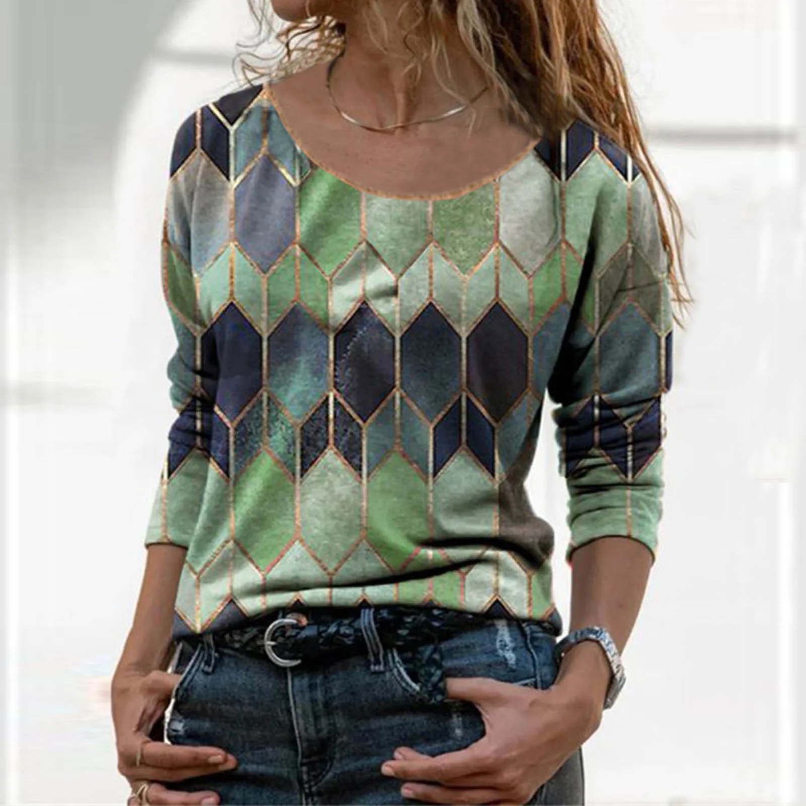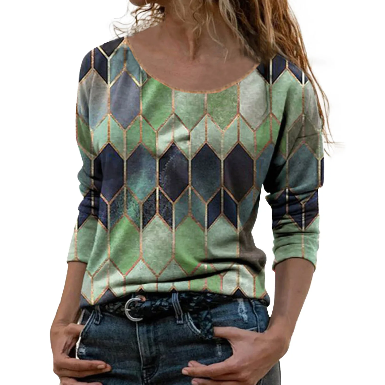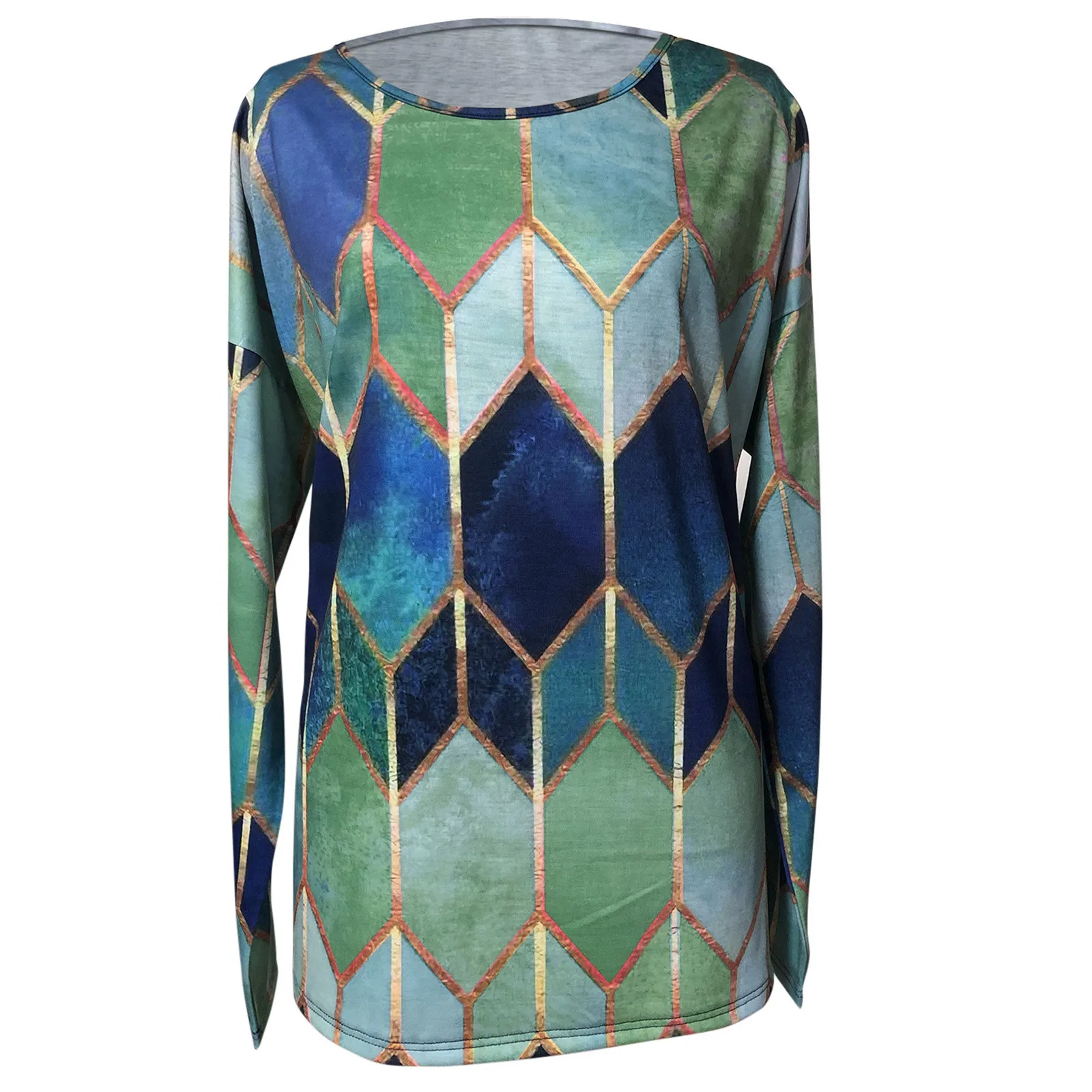 Блузка женская с круглым вырезом, модный элегантный пуловер в стиле ретро, с длинным рукавом, в стиле пэчворк, осень 2021