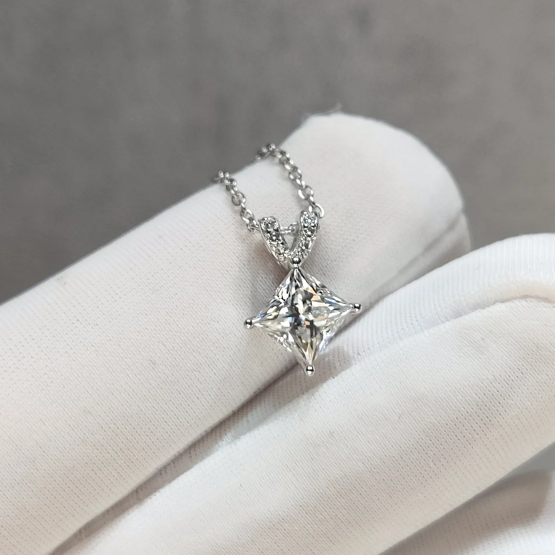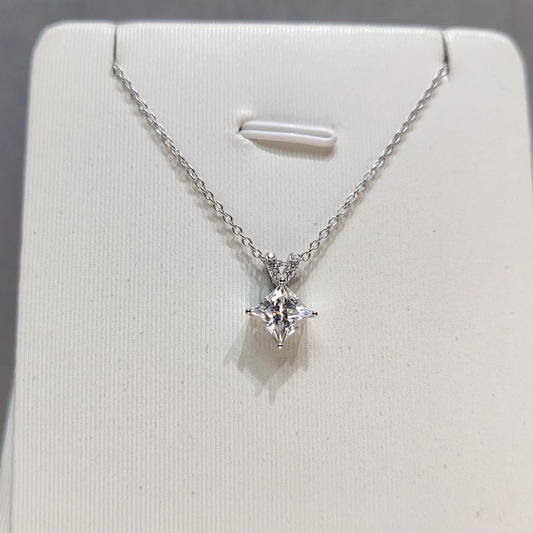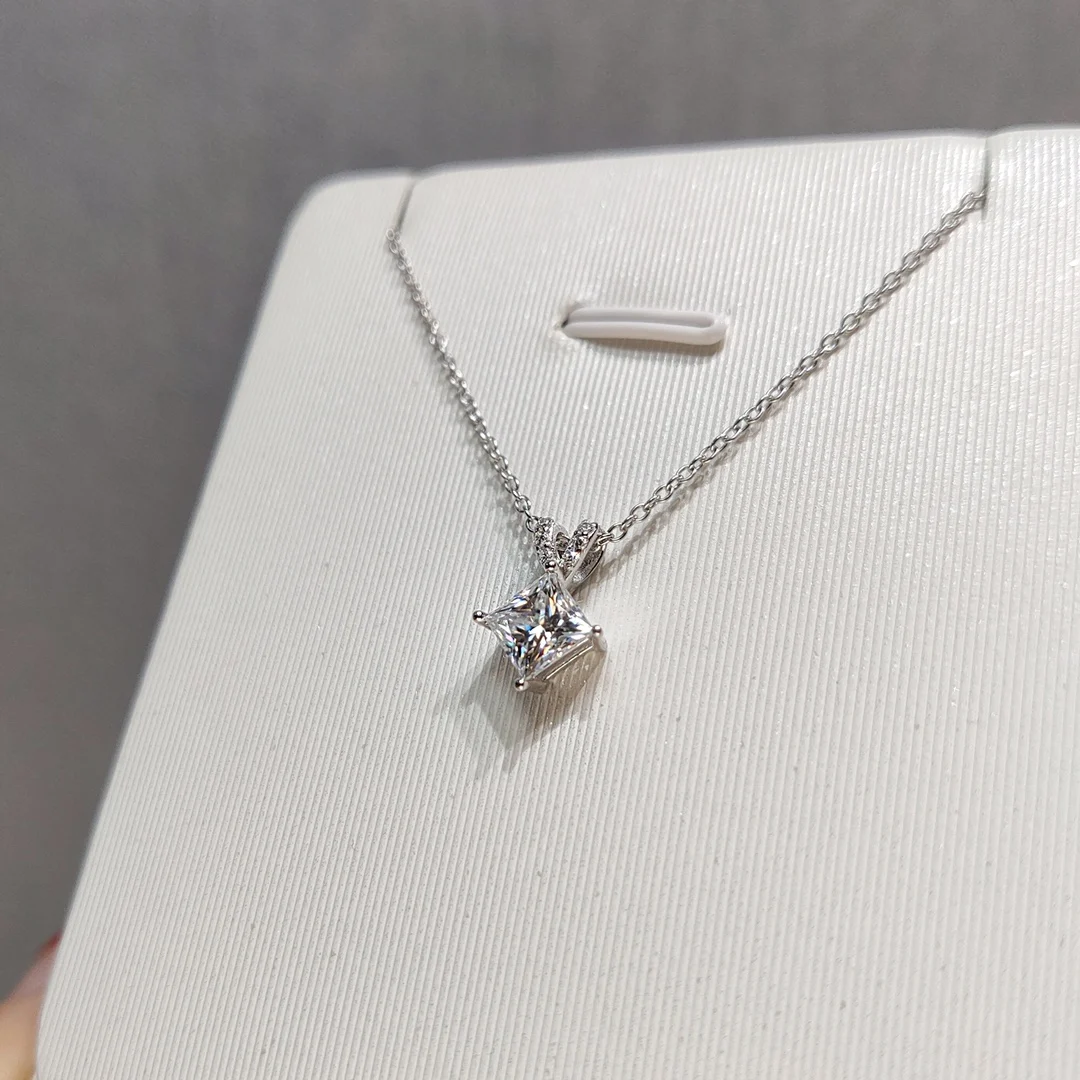 С покрытием 18-ти каратным белым золотистого и серебристого цветов; Цвет 925 оригинальный 1 карат D Цвет Moissainte Diamond тесты последние сердце квадратные драгоценный кулон ожерелье для женщин