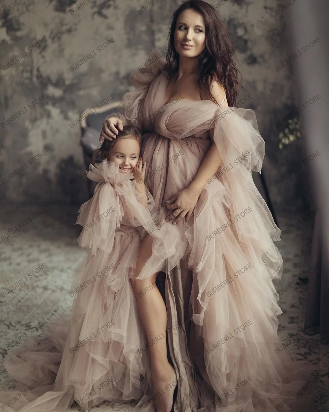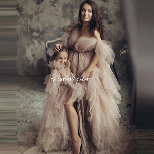 Платье для мамы и дочки, длинное Тюлевое платье с высоким и низким вырезом для беременных, для фотосессии, женские платья для детей, платье для выпускного вечера