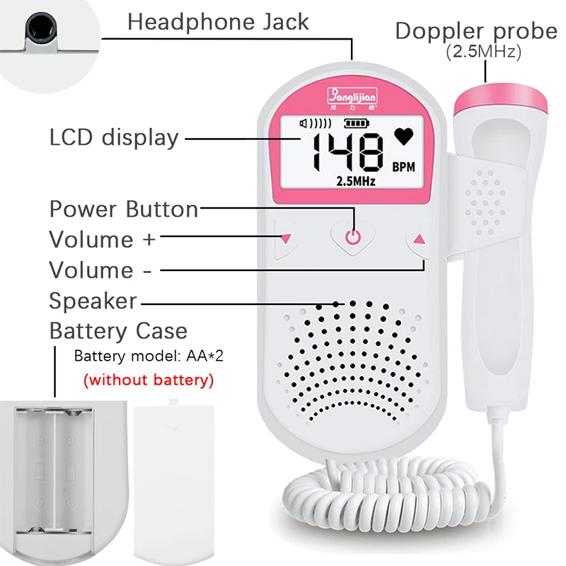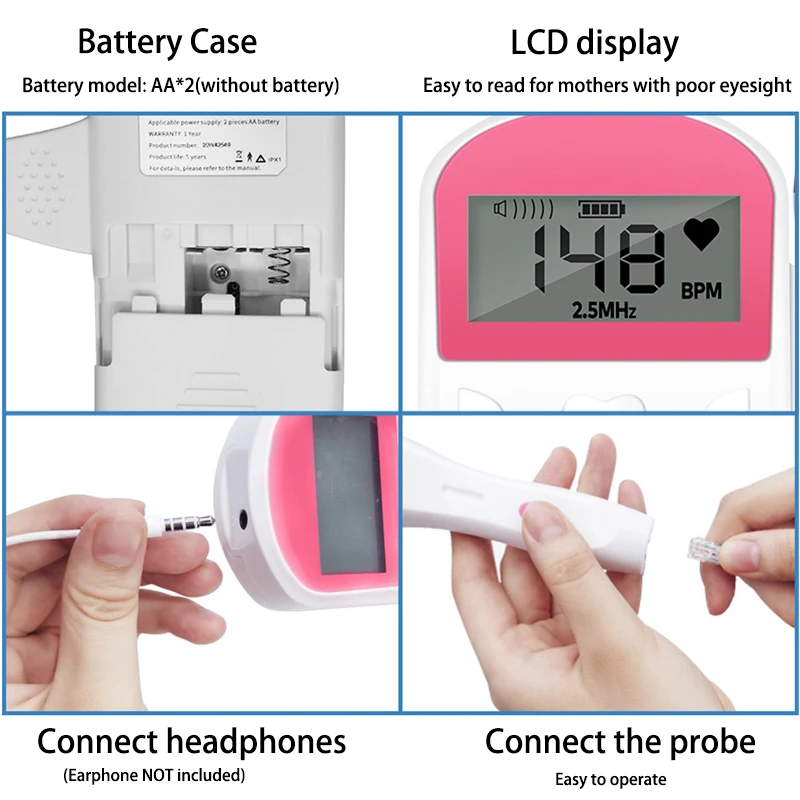 2. 【Жк-дисплей 】:Монитор Сердца Плода принимает большой ЖК-дисплей с задней крышкой, с четкими шрифтами.