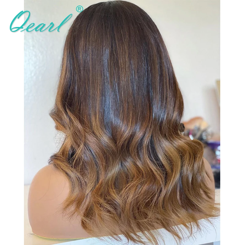 Натуральные коричневые человеческие волосы Омбре, парик на сетке спереди, прозрачный парик на сетке HD, волнистые бразильские волосы без повреждений для женщин, предварительно выщипанные 150% Qearl