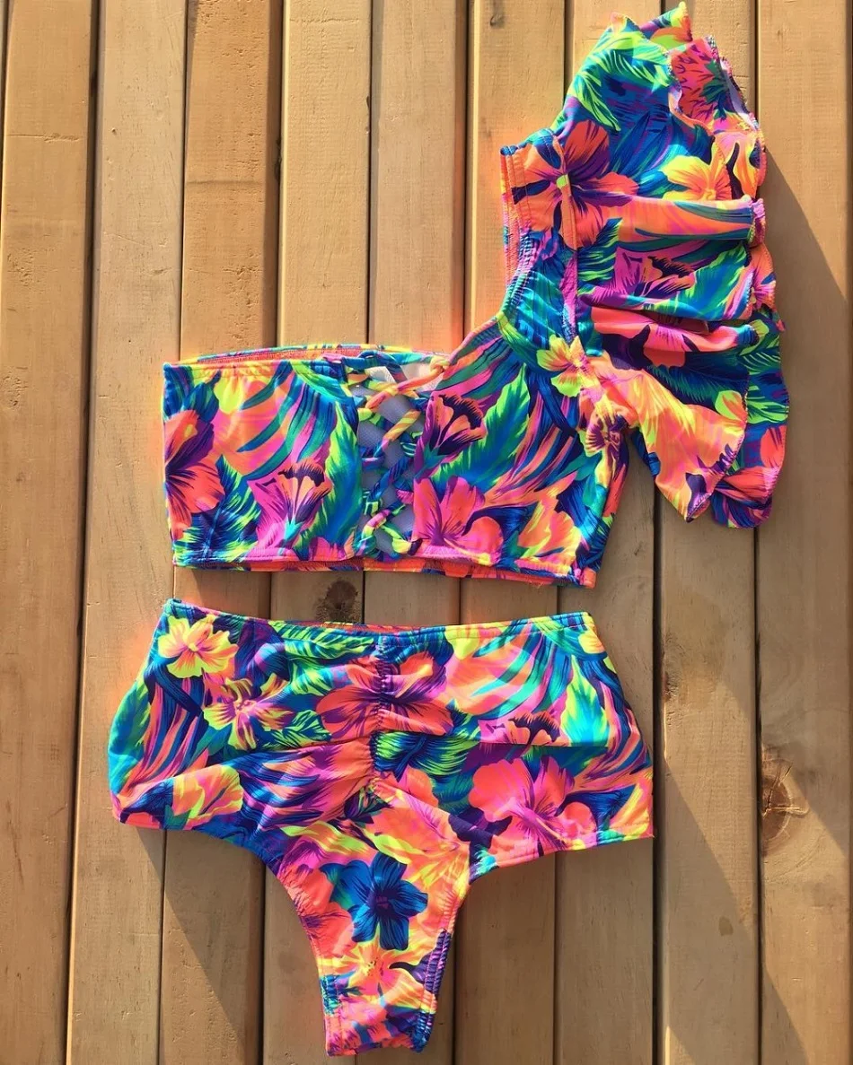 2021 новый сексуальный купальник бикини с высокой талией женский купальник купальный костюм с пуш-ап на одно плечо с оборками купальный костюм Пляжная одежда S-XL