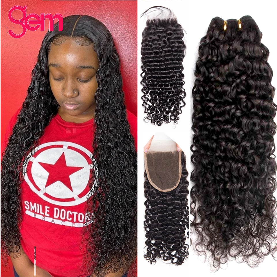 30 дюймов глубокая волна пряди с закрытием влажные и волнистые волосы 3 пряди с застежка камень волос бразильские волнистые волосы virgin (не подвергавшиеся химическому воздействию), пряди с закрытием