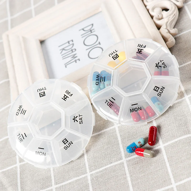 7-дневная коробка для лекарств и таблеток, маленькая круглая портат...