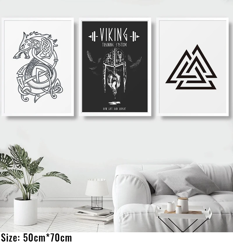 Корабль Викингов символ Valknut, Классическая Картина на холсте, Постер и печатная картина, Настенная картина для гостиной, нордическое украшение для дома