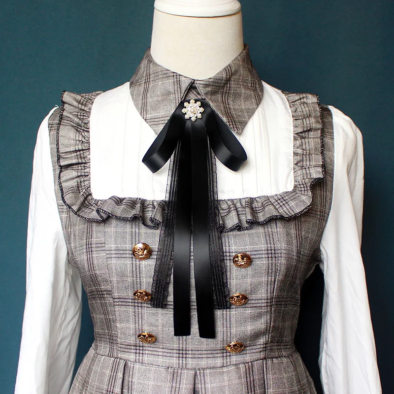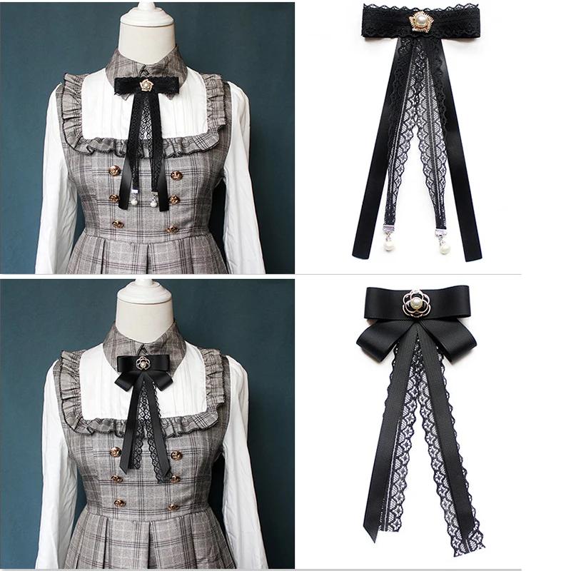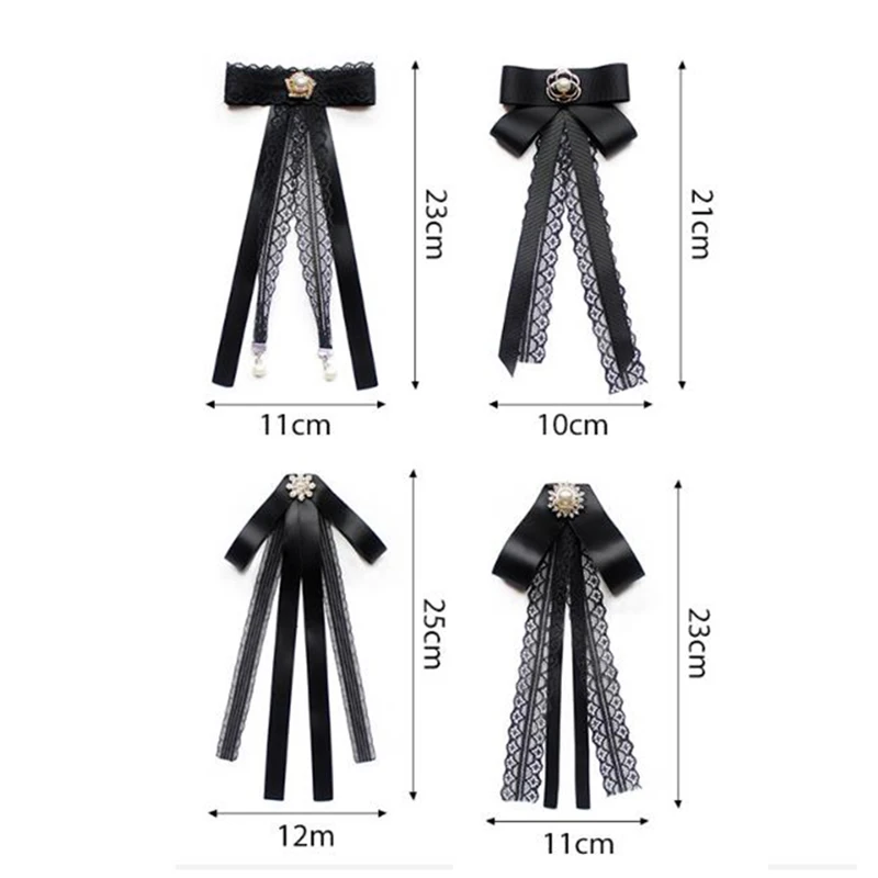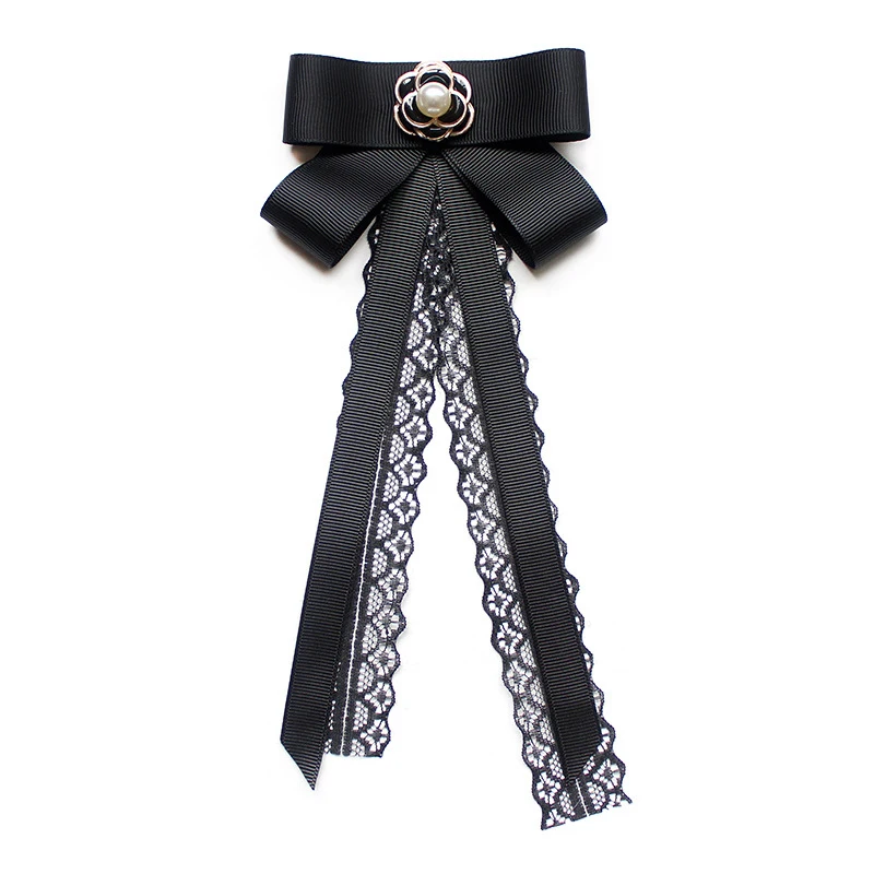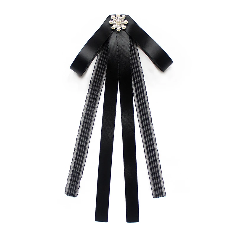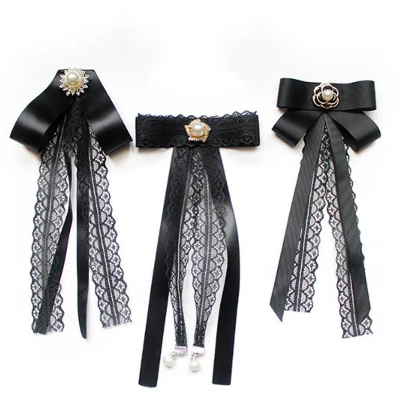 Модный женский галстук-бабочка с лентой для женщин, Кружевной Галстук-бабочка, жемчужные броши, булавка для рубашки, костюма, студенческие аксессуары для деловой одежды