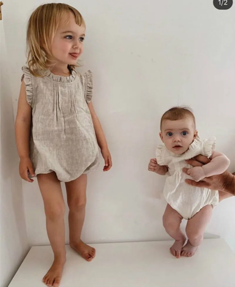 Органический хлопок для маленьких девочек одежда для детей новые летние двойной газовые гольфы до колена с рюшами для малышей; Комбинезон для маленьких девочек Одежда для мальчиков белье комбинезон