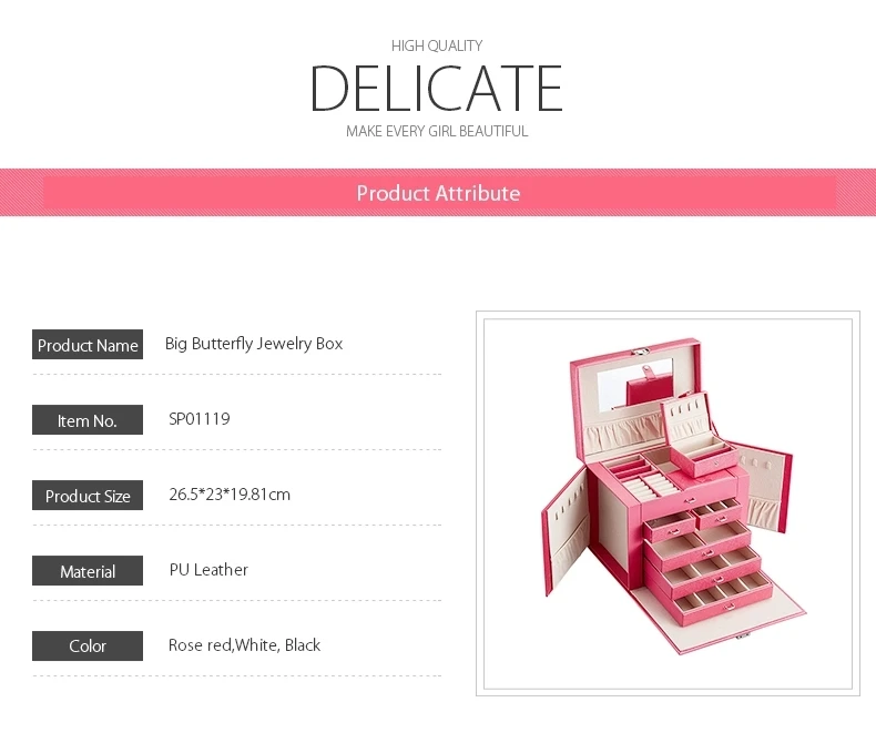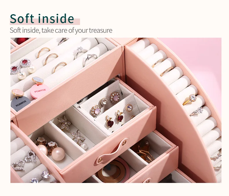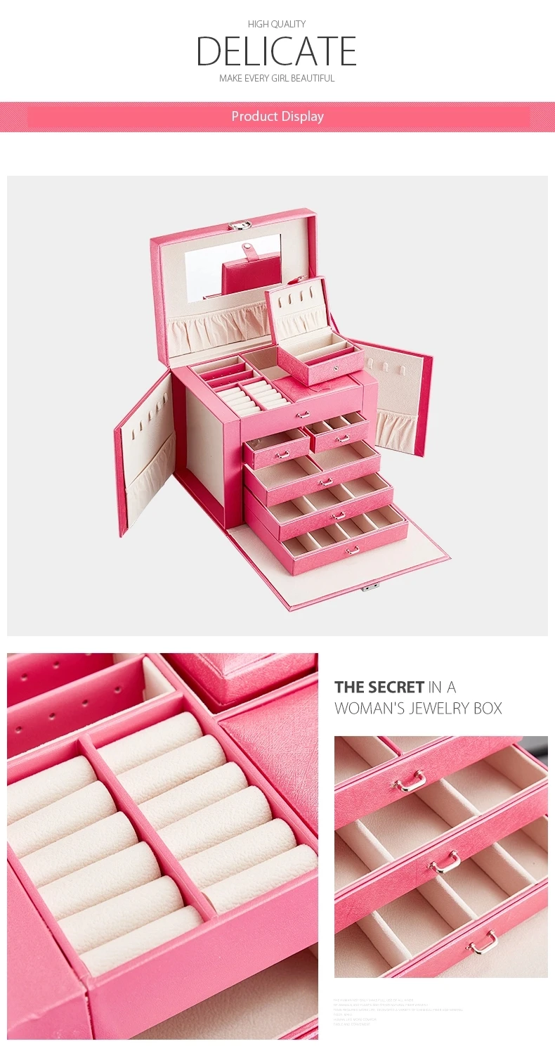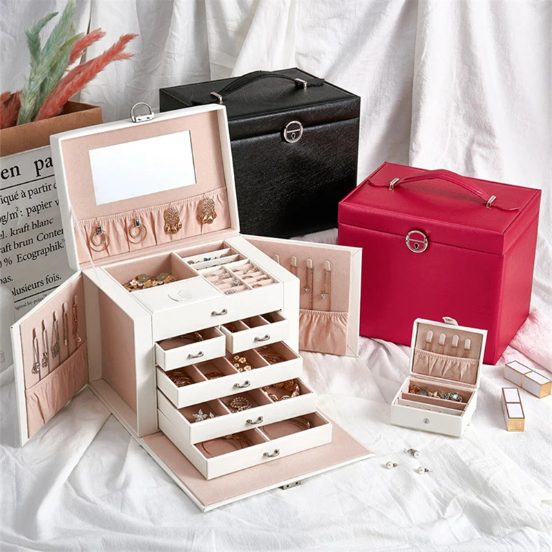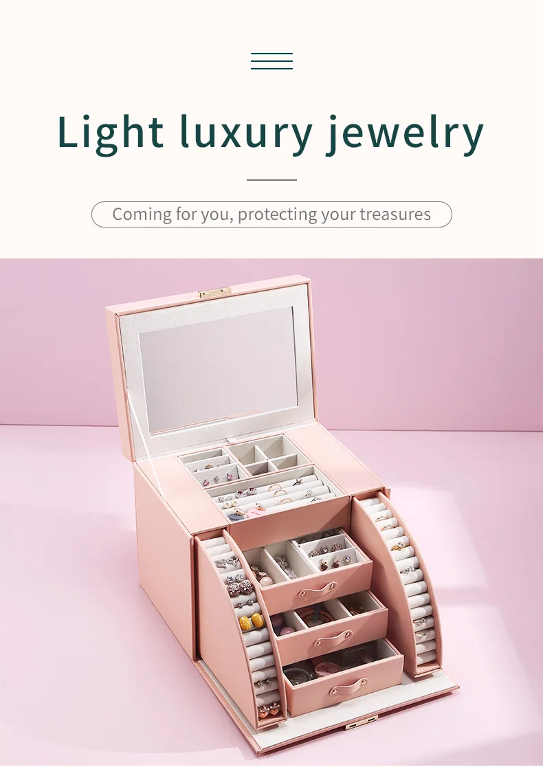 Шкатулка для ювелирных изделий XINSOM Женская, большой многослойный Органайзер большой вместимости с зеркалом, шкатулка для хранения украшений, подарок для девушек