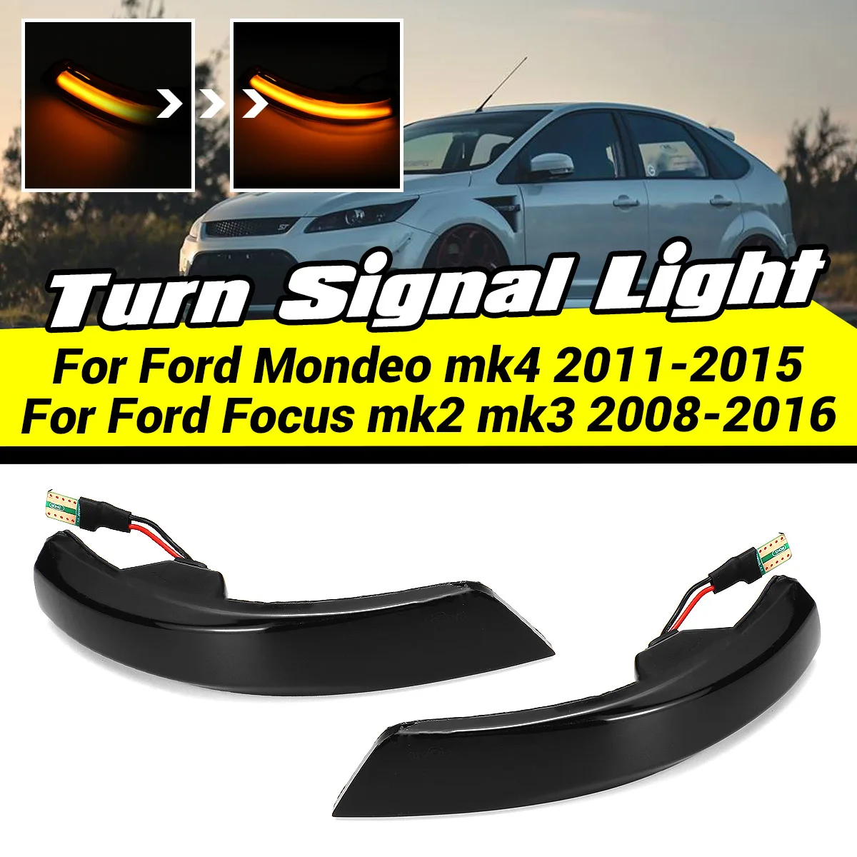 Светодиодный индикатор для зеркала заднего вида, 2 шт., динамический светильник поворота, лампа s для Ford Focus 2, 3, Mk2, Mk3, Mondeo Mk4, 2008-2016