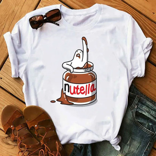 Женские футболки с эстетическим принтом Nutella, футболки с коротким рукавом и круглым вырезом, футболка с героями мультфильмов, топы в стиле Харадзюку 90-х годов, размера плюс