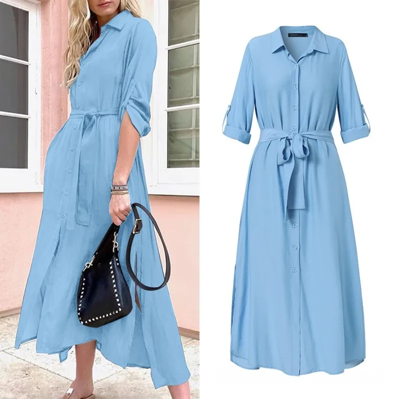 Платье-рубашка женское осеннее, на пуговицах, с лацканами