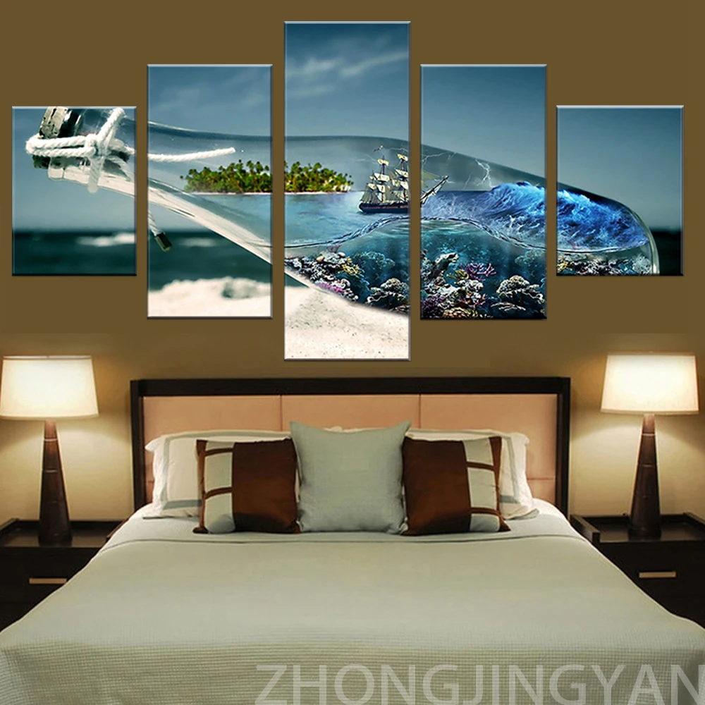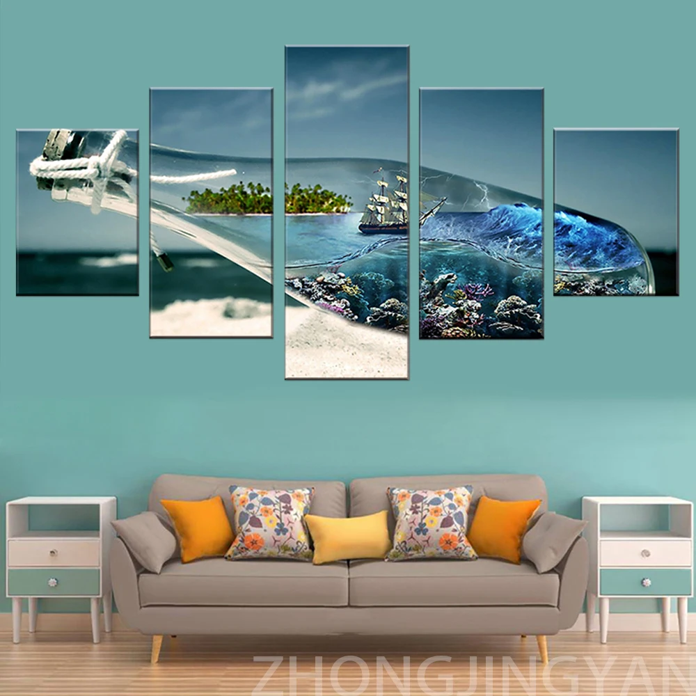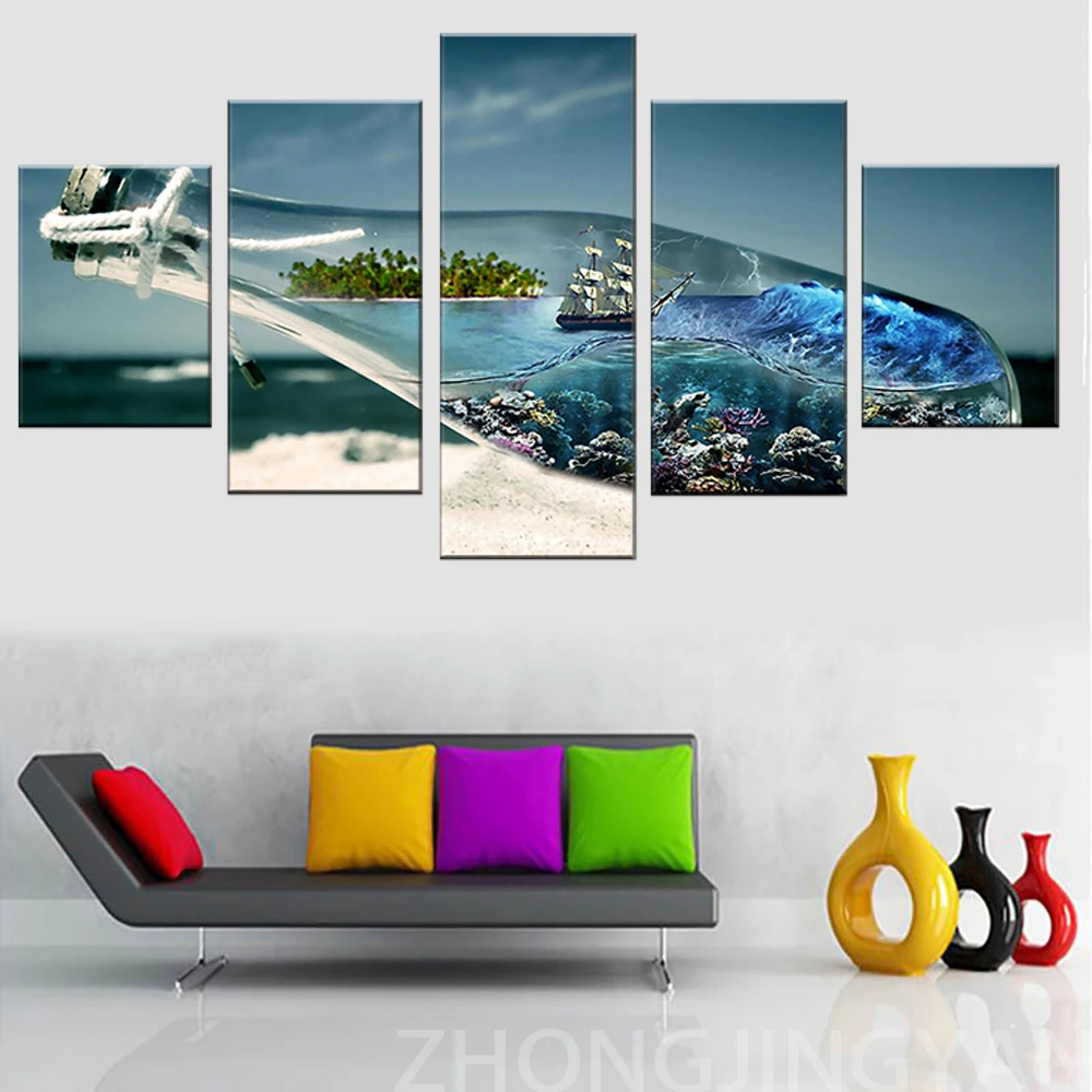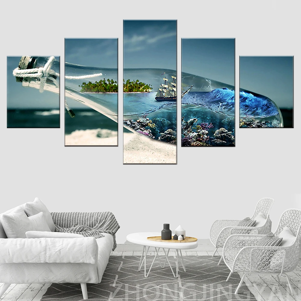 Современная Абстрактная HD-картина с пейзажем, 5 панелей, бутылка дрифта, холст, настенное художественное оформление для гостиной