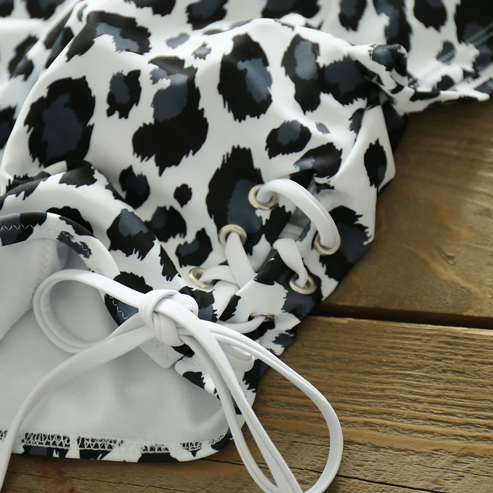Сексуальные бикини с леопардовым принтом и листьями, женский купаль...