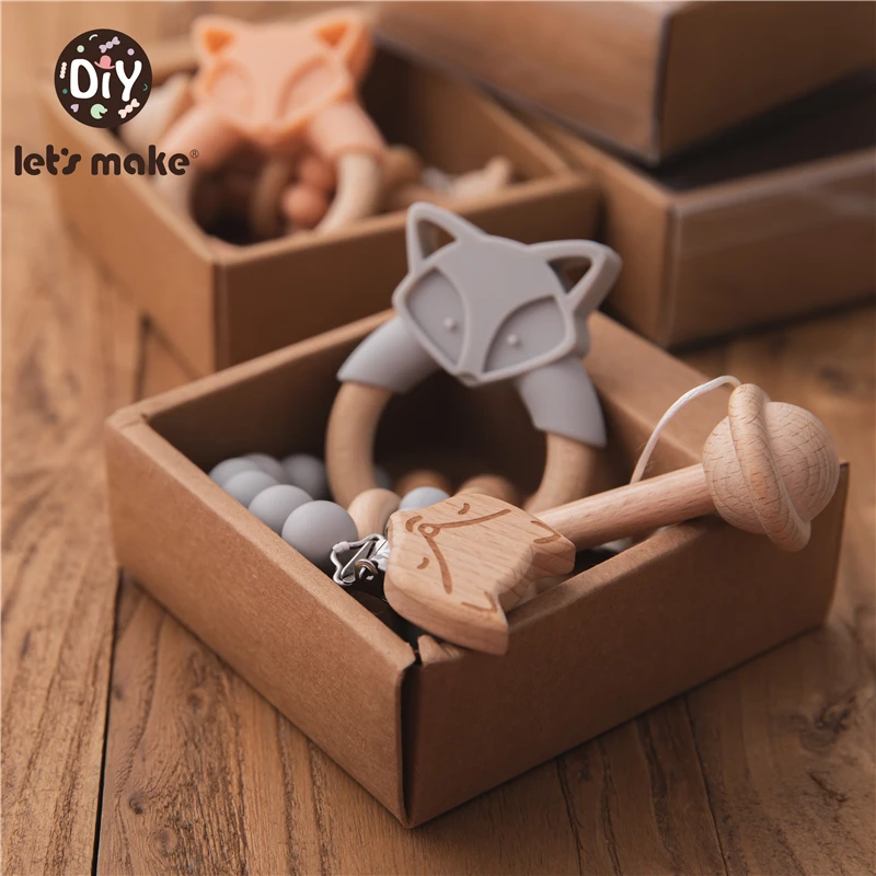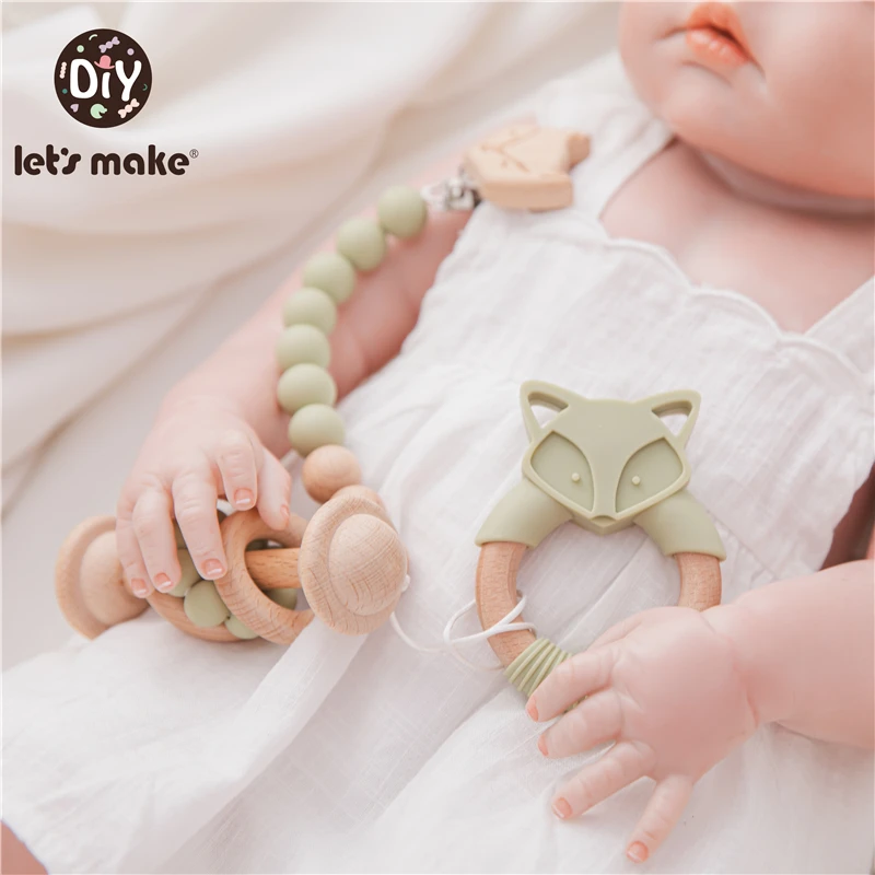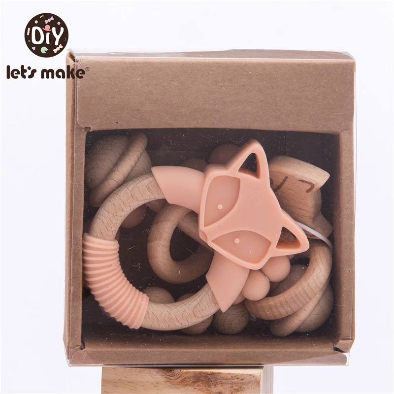 Деревянные Прорезыватели для зубов Let's Make, колокольчики, лиса, погремушки, деревянное кольцо, прорезыватель, буковое деревянное кольцо, игрушки, силиконовые товары, подарок для детей