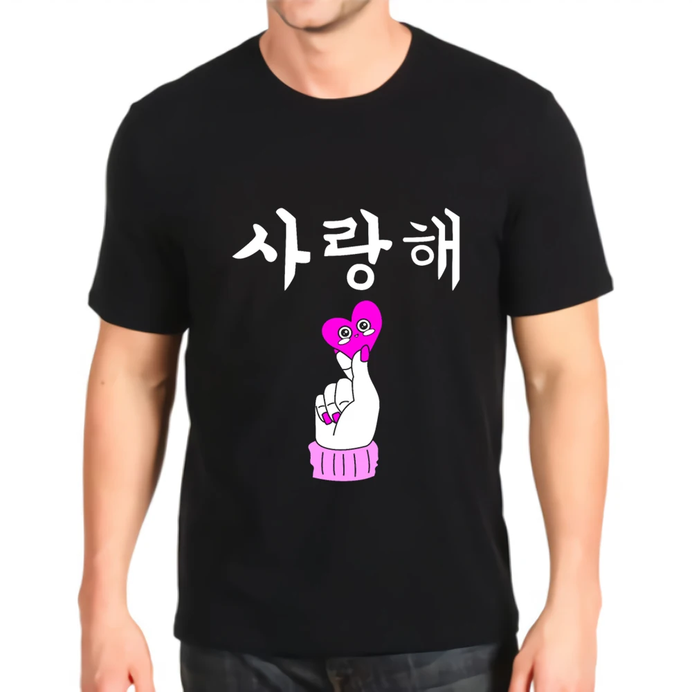 Новая футболка с принтом и круглым вырезом kdrama kpop saranghae, хлопковый мужской топ с короткими рукавами, сделанный на заказ