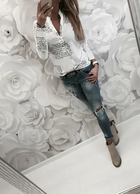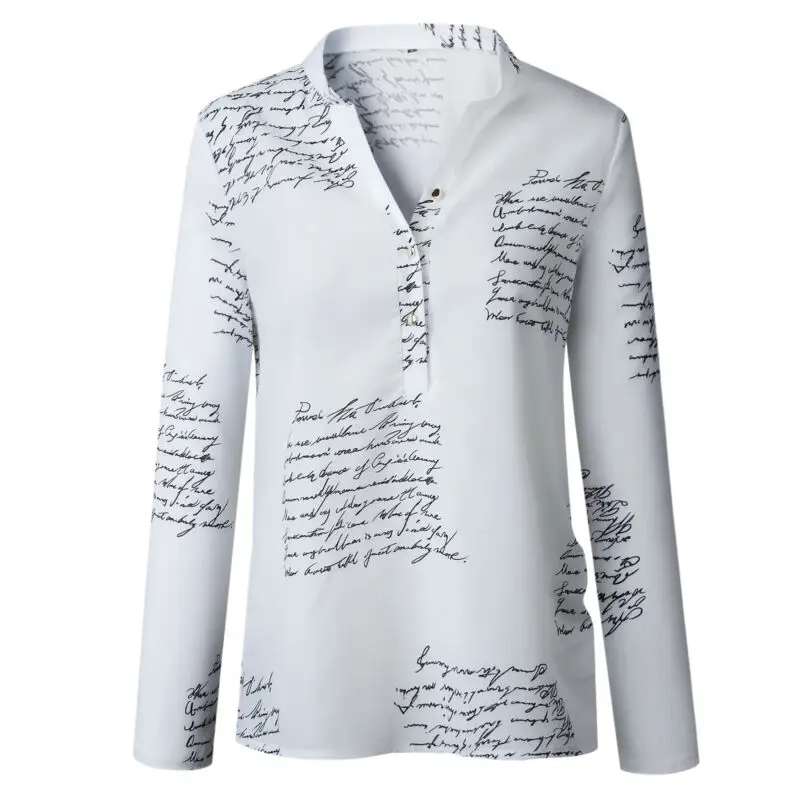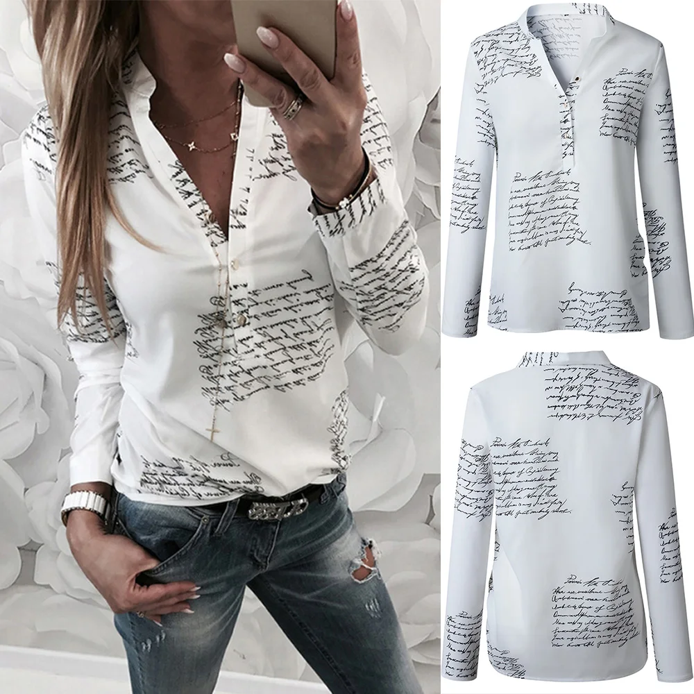 Женская блузка с буквенным принтом 4 #, с V-образным вырезом, на пу...