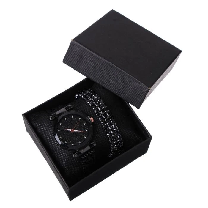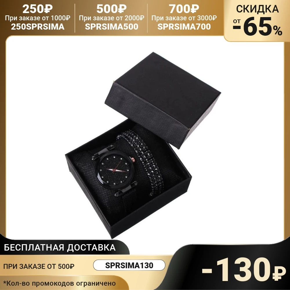 Подарочный набор 2 в 1 "Ночь": наручные часы и браслет, d=3.5 см, магнитный ремешок 5256946