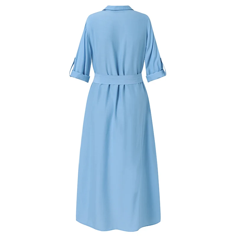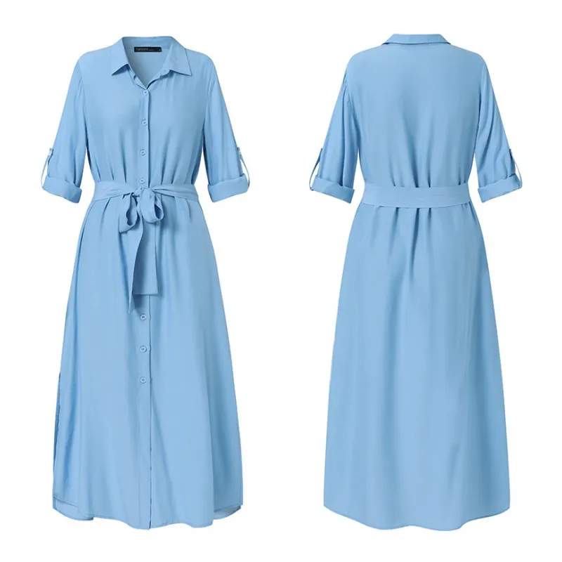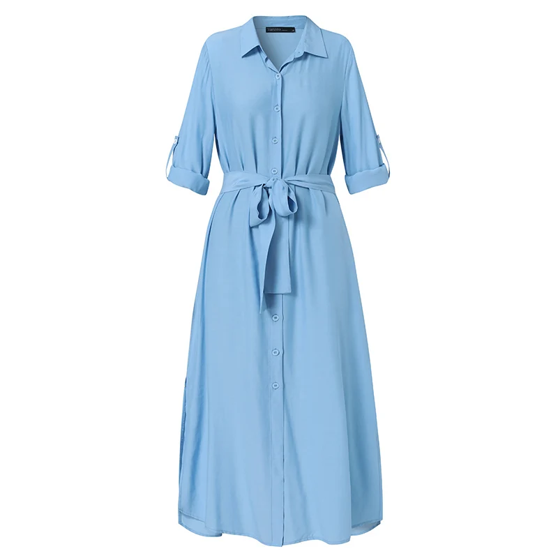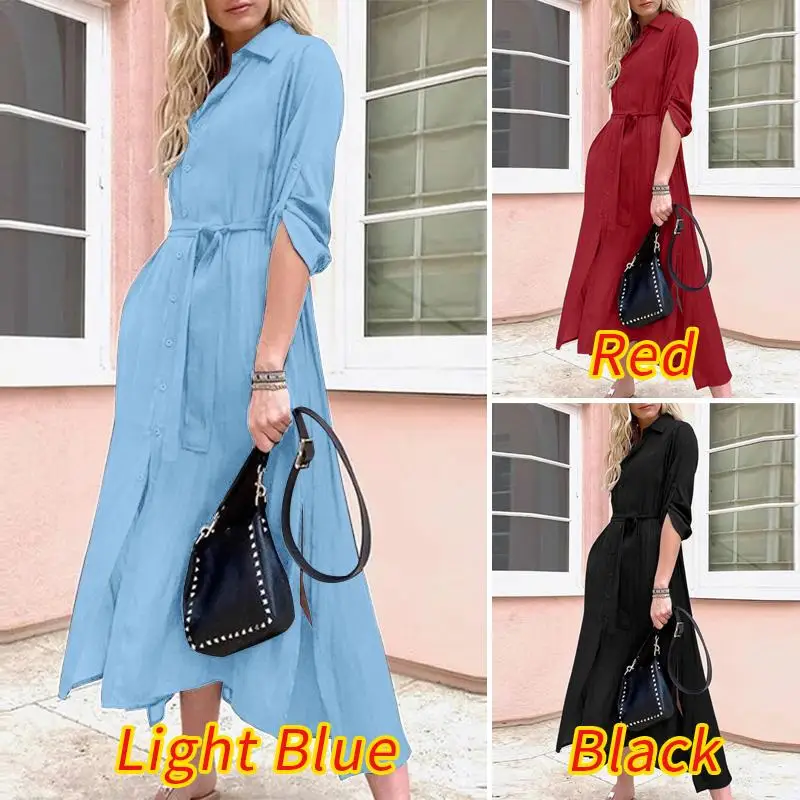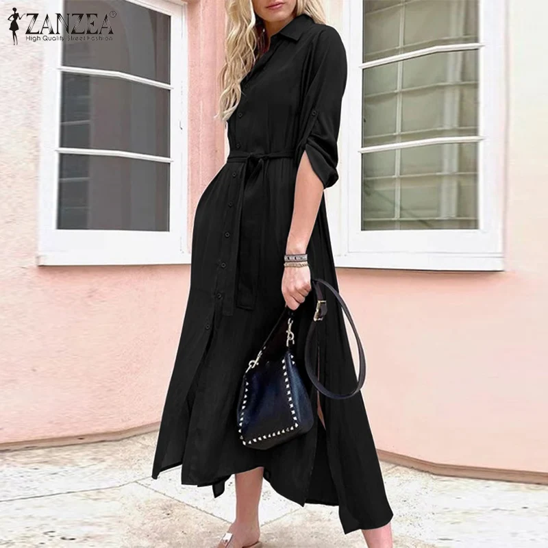 Платье-рубашка ZANZEA женское однотонное, элегантный повседневный длинный рукав, платье с поясом, на пуговицах, 7, 2021