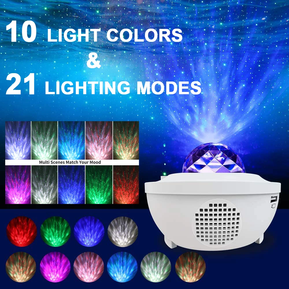 Светодиодный Звезда Ночной Светильник музыкальным проигрывателем Bluetooth дистанционное Управление Звездное проектор волна воды с 21 светильник ing режимов таймер питаемые через USB порт активация звуком звезда моря для подарков и для вечеринки, дня рождения свадьбы