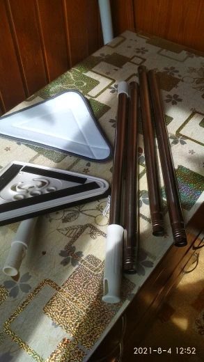 Отличная швабра. Быстрая доставка. Треугольники-тряпочки легко крепятся с помощью липучки. Хорошо очищают поверхность стекла. Имеется фиксатор поворота головки швабры, что удобно использовать при очищение стекла резиновым скребком. Ручка швабры легко собирается, составные элементы прикручиваются друг с другом. Покупкой очень довольна. Взяла запасные треугольники, они очень пригодились при мытье сразу нескольких окон.