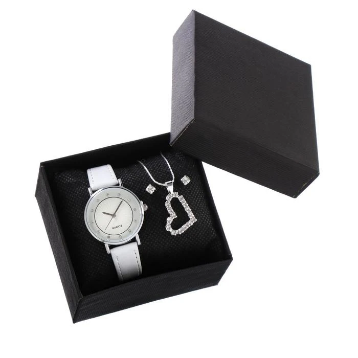 Подарочный набор3 в 1 "Сердце": наручные часы, d=3 см, кулон, серьги 5256917