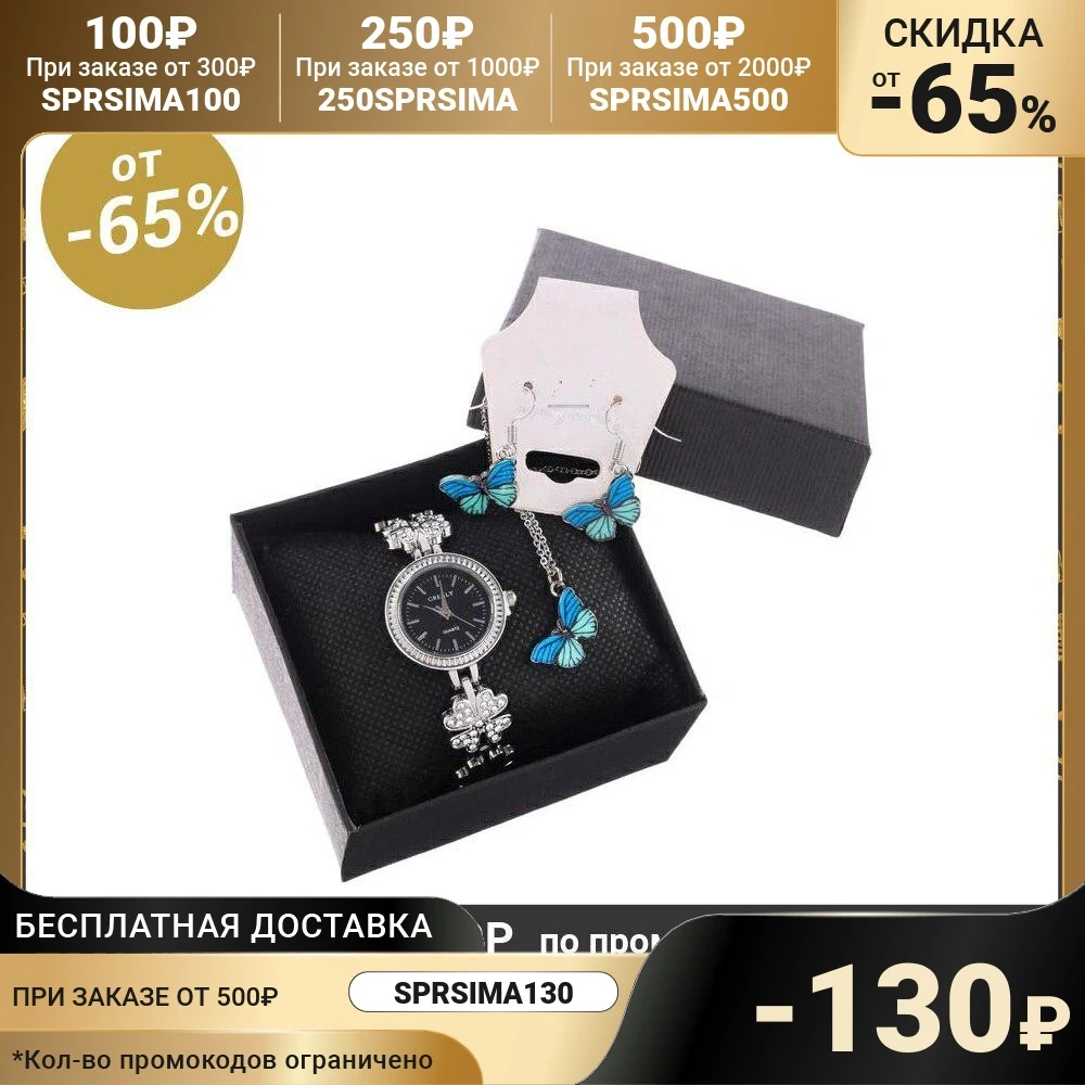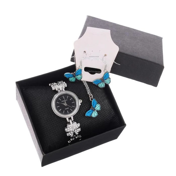 Подарочный набор 3 в 1 "Бабочки": наручные часы d=2.7 см, серьги, кулон 5269912