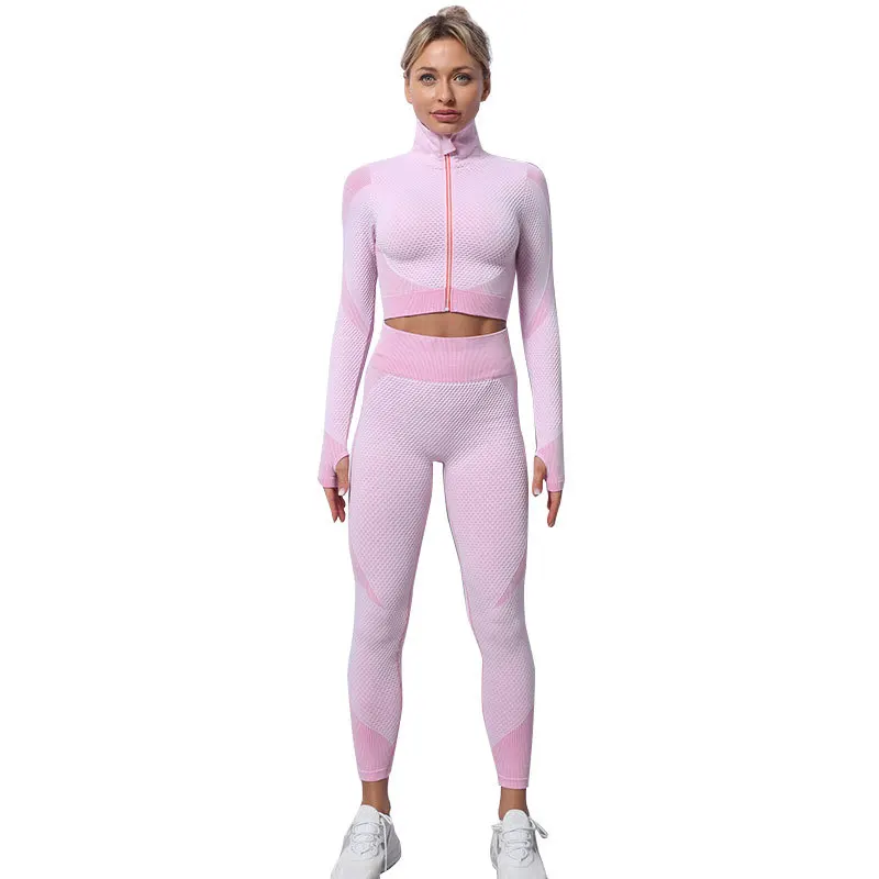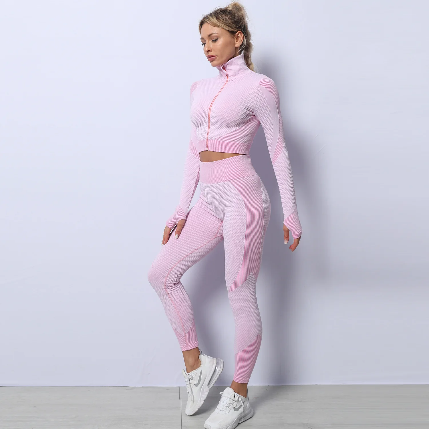 Женский бесшовный вязаный комплект для йоги, пальто на молнии с длинным рукавом, спортивный бюстгальтер, облегающие леггинсы с высокой талией, женский спортивный костюм, костюм для фитнеса
