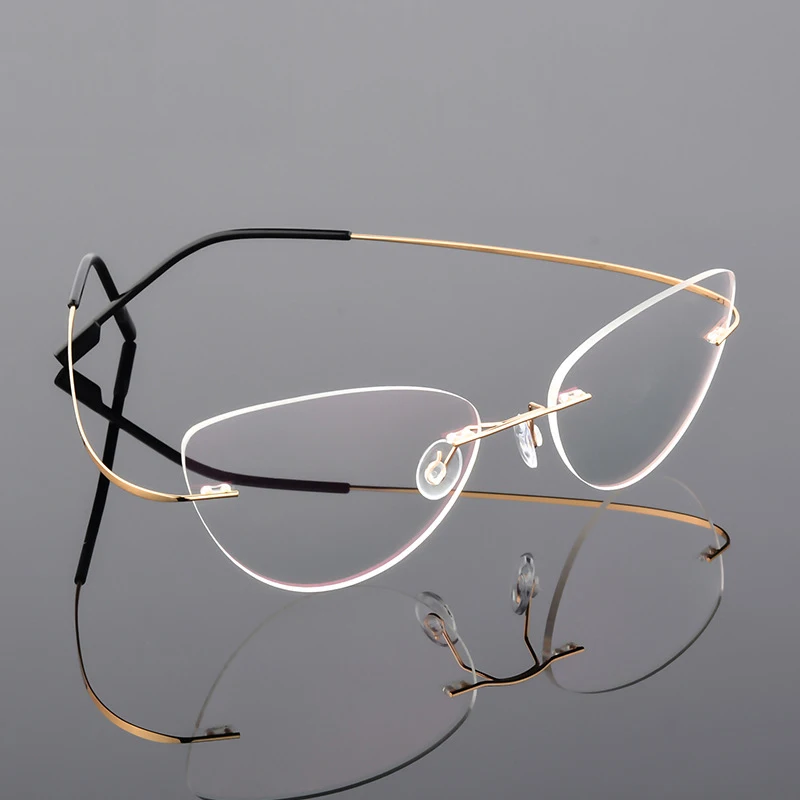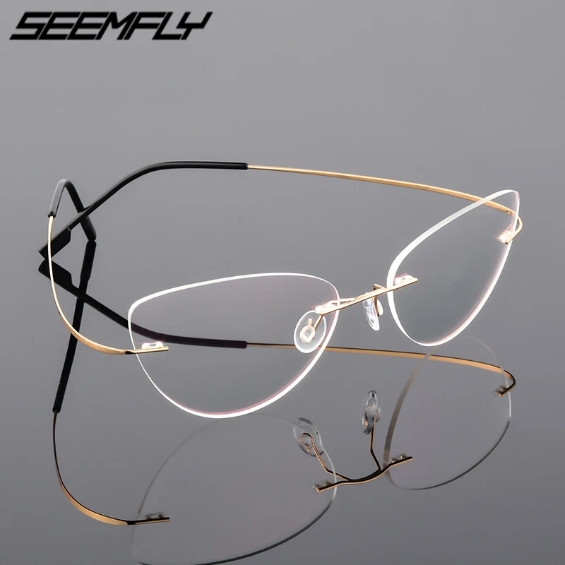 Очки Seemfly кошачий глаз женские, винтажные ультралегкие очки без оправы с прозрачными линзами, простые зеркальные, из титанового сплава
