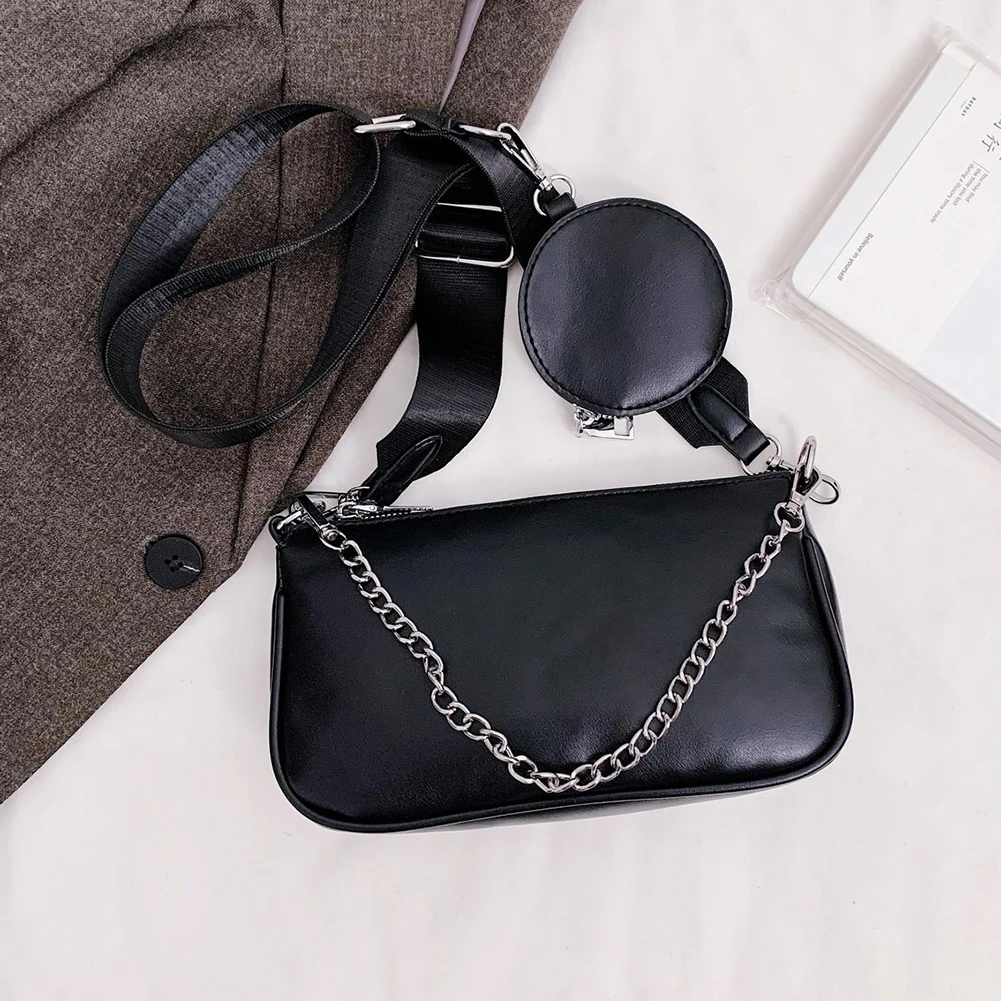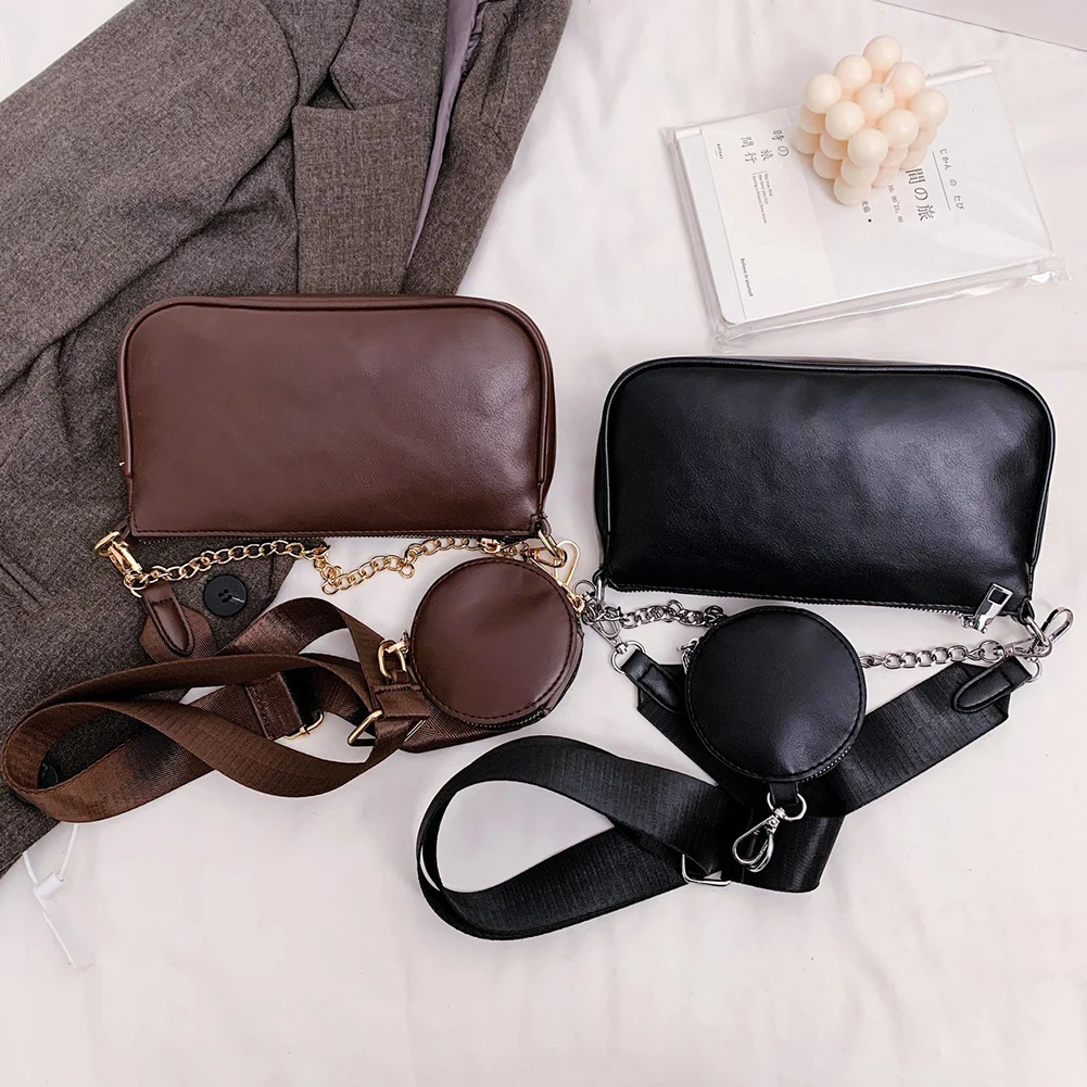 2 шт./компл., модная женская сумка через плечо из искусственной кожи, простая однотонная сумка с цепочкой, вместительная сумка, клатч, композитный набор