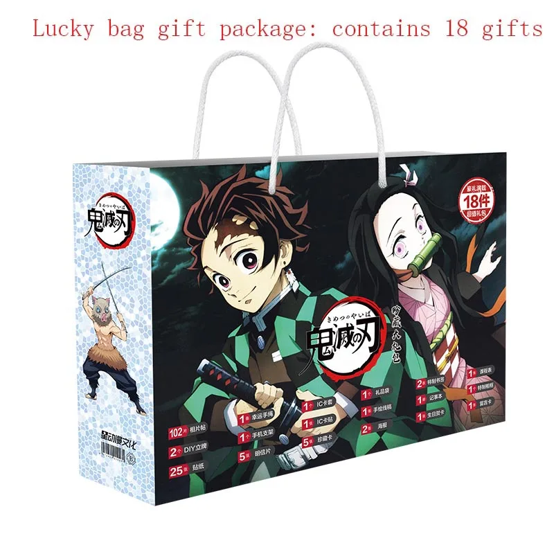 Подарочная сумка Demon Slayer на удачу, коллекционная сумка, игрушка Kimetsu No Yaiba, открытка, браслет, плакат, значок, наклейки, Закладка, Gif